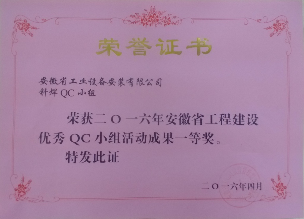 近日,安徽省工程建設(shè)優(yōu)秀QC小組活動成果交流會在肥順利舉行。本次活動以“萬眾創(chuàng)新、扎實推進(jìn)、分享提升”為主題,由安徽省工程質(zhì)量監(jiān)督檢測管理協(xié)會主辦,安徽建工集團(tuán)有限公司協(xié)辦,來自全省建筑業(yè)企業(yè)的235支QC小組成員競技一堂。會上,安徽安裝公司質(zhì)量管理小組題為“提高冷庫制冷系統(tǒng)銅管釬焊的一次合格率”的成果獲得了全省一等獎的好成績。