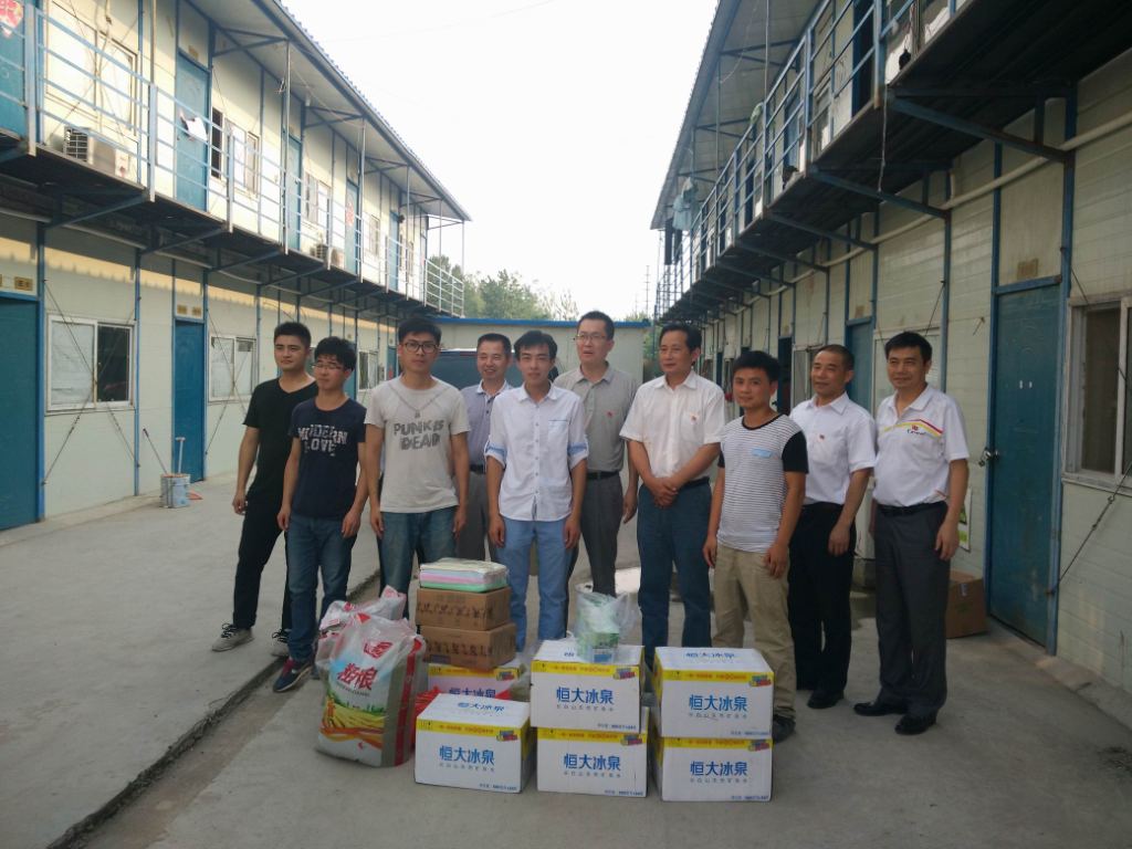 日下午,正值高溫,集團(tuán)公司黨委副書記牛曙東,在黨委工作部主任徐文聯(lián)的陪同下,深入公司承建的皖北藥業(yè)二期工程,看望慰問在高溫酷署中仍堅(jiān)守一線辛苦工作的職工們,為他們送上了綠豆、飲料、茶葉、白糖等防暑降溫物品,也為這個(gè)炎炎夏日增添了絲絲清涼。