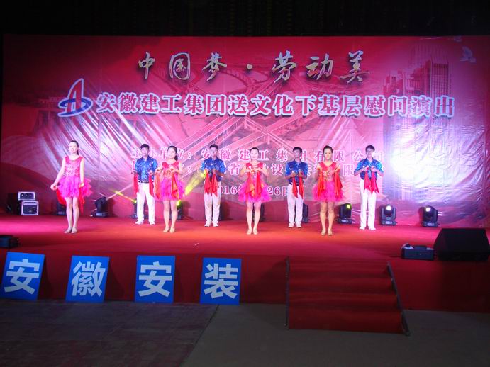 8月26日晚,集團(tuán)公司送文化下基層深入公司白湖監(jiān)獄罪犯醫(yī)療綜合樓項(xiàng)目部慰問(wèn)演出,白湖監(jiān)獄綜合樓項(xiàng)目部全體管理人員和農(nóng)民工兄弟200多人現(xiàn)場(chǎng)觀看了演出。該工程位于廬江縣白湖鎮(zhèn),這里工作著一批腳踏實(shí)地、埋頭苦干、敢于擔(dān)當(dāng)、奉獻(xiàn)企業(yè)的職工,來(lái)自集團(tuán)公司各子公司的“演員”,帶著自編、自導(dǎo)、自演的精品文藝作品,將用一場(chǎng)精妙的文化活動(dòng),在這里掀起文化與建設(shè)互動(dòng)的歡樂(lè)波瀾。集團(tuán)公司工會(huì)主席徐曉光,白湖分局黨委副書(shū)記、總經(jīng)理沈建華以及公司有關(guān)領(lǐng)導(dǎo)和參演單位工會(huì)主席出席了演出活動(dòng)。