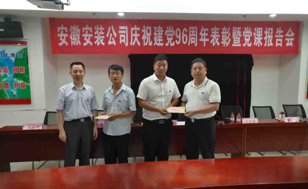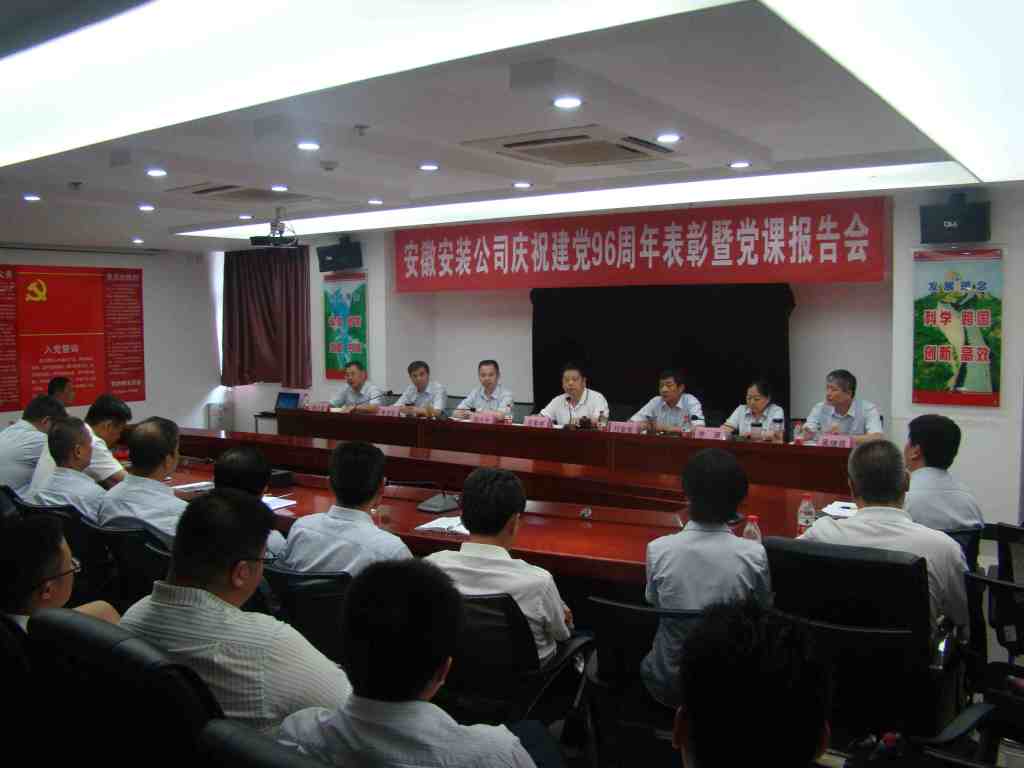 6月29日下午,安徽安裝公司召開(kāi)慶祝建黨96周年表彰大會(huì)暨“七一”專題黨課活動(dòng),公司領(lǐng)導(dǎo)班子、在肥在崗黨員、入黨積極分子以及受表彰的先進(jìn)集體、先進(jìn)個(gè)人等60余人參加了會(huì)議。會(huì)議由公司董事長(zhǎng)、總經(jīng)理、黨委副書(shū)記王軍邦主持。