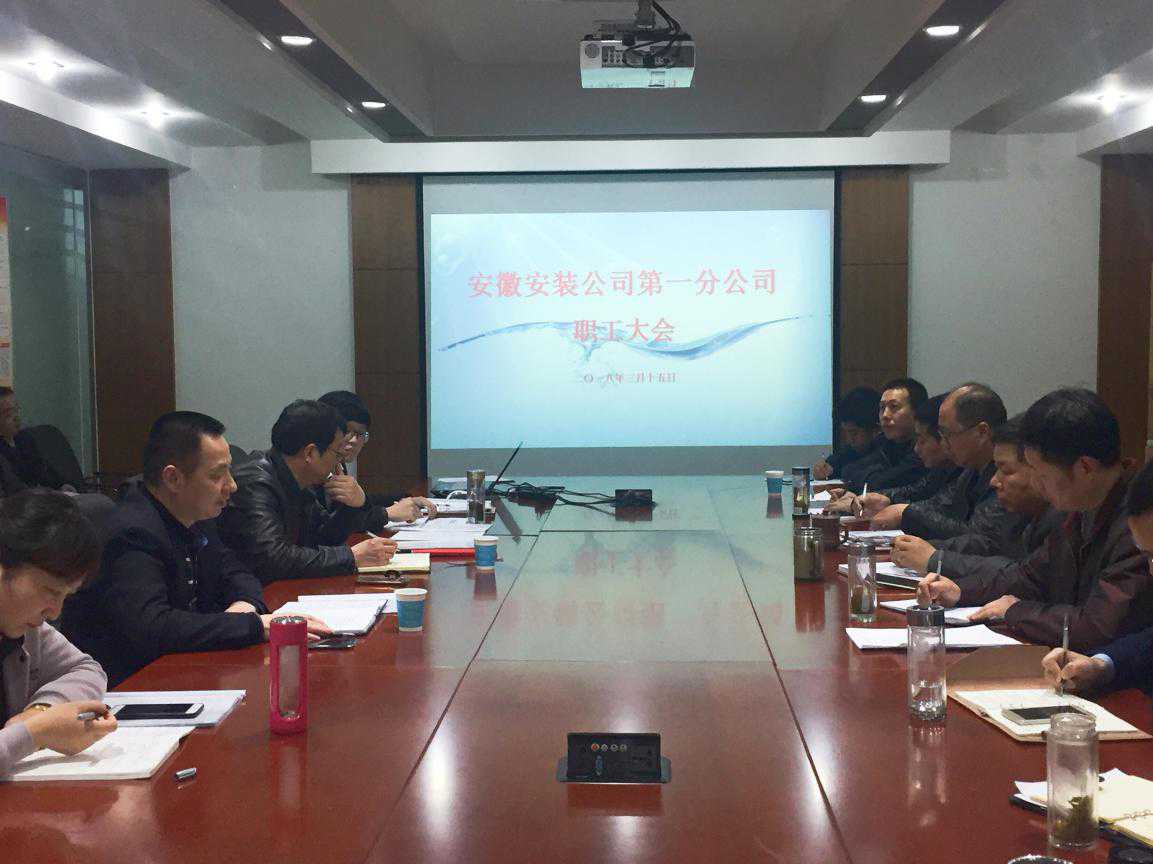 2018年3月15日,第一分公司在分公司機(jī)關(guān)召開(kāi)2017年度職工大會(huì)。公司黨委書(shū)記、副總經(jīng)理胡六中,紀(jì)委書(shū)記、工會(huì)主席李寬旭,人力資源部經(jīng)理王敏等出席了會(huì)議,分公司機(jī)關(guān)全體人員及在肥項(xiàng)目部員工共36人參加了會(huì)議。會(huì)議由第一分公司黨支部書(shū)記胡迎東主持。