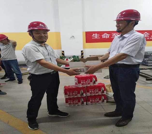 7月23日,第一分公司黨支部書記胡迎東、分管生產(chǎn)副經(jīng)理魯會(huì)、分管安全副經(jīng)理李多德、一分公司工會(huì)副主席鄭佳及相關(guān)部門負(fù)責(zé)人來到省行政中心提升改造項(xiàng)目部,為現(xiàn)場員工發(fā)放了茶葉、礦泉水、花露水等防暑降溫物品,把清涼送到了施工一線,把關(guān)懷送到員工心中!大家紛紛表示:雖然在屋頂露天施工酷熱難耐,但有分公司領(lǐng)導(dǎo)的關(guān)懷,一定能克服高溫環(huán)境帶來的困難,堅(jiān)守崗位,苦干實(shí)干,保質(zhì)保量地按時(shí)完成施工任務(wù)。
