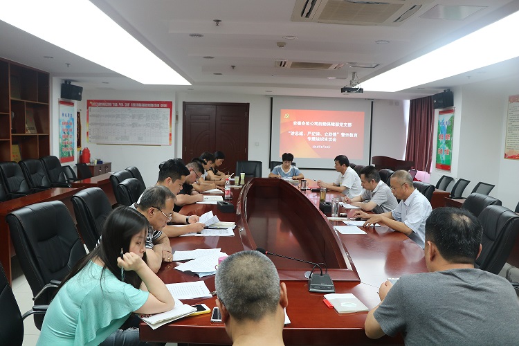 8月10日下午,后勤保障部黨支部在公司十六樓會議室召開“講忠誠、嚴(yán)紀(jì)律、立政德”警示教育專題組織生活會,公司黨委書記、副總經(jīng)理胡六中,紀(jì)委書記、工會主席李寬旭出席會議,會議由黨支部書記趙榮珣主持。