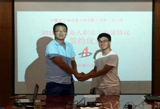 為加快推進公司人才隊伍建設,滿足公司可持續(xù)健康發(fā)展需要,安徽安裝公司規(guī)范用才機制,加大人才培養(yǎng)力度。近日,公司組織新入職員工進行師徒結對,簽訂師徒協(xié)議,安排有經驗的管理人員做好“傳幫帶”,幫助新員工盡快地適應企業(yè)、熟悉工作,掌握崗位技能,盡快成長成熟。