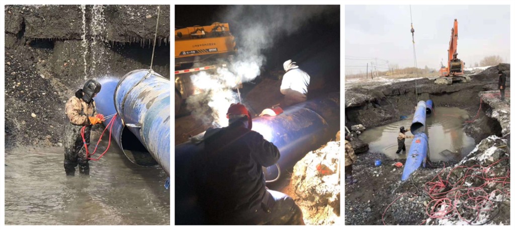 該工程是在野外長距離作業(yè),管道沿途需要穿過高速、省道、鐵路、亞歐光纜及眾多鄉(xiāng)村道路和田間陰溝,施工區(qū)域內有農田、戈壁、沙漠,沼澤等,自然環(huán)境極其惡劣,施工地質極為復雜。尤其在步入11月,新疆烏蘇市正式進入寒冬季節(jié),期間平均氣溫都在零下十度以下,并時常飛舞著雪花,由于晝夜溫差大,夜間項目上的氣溫更是達到零下二三十度,這給項目部施工帶來了嚴重挑戰(zhàn),但項目部員工沒有被惡劣的環(huán)境所嚇倒,他們“逢山開路、遇水搭橋”,努力克服各方面不利因素,合理安排施工進度計劃。全體職工發(fā)揚安徽建工人“特別能吃苦,特別能戰(zhàn)斗”的企業(yè)作風,在公司“大干60天”勞動競賽的正向激勵下,不畏環(huán)境艱苦,抓質量,保安全,戰(zhàn)荒漠,斗嚴寒,每天堅持戰(zhàn)斗在生產(chǎn)第一線,哪里有施工,哪里就有管理人員的堅定身影。