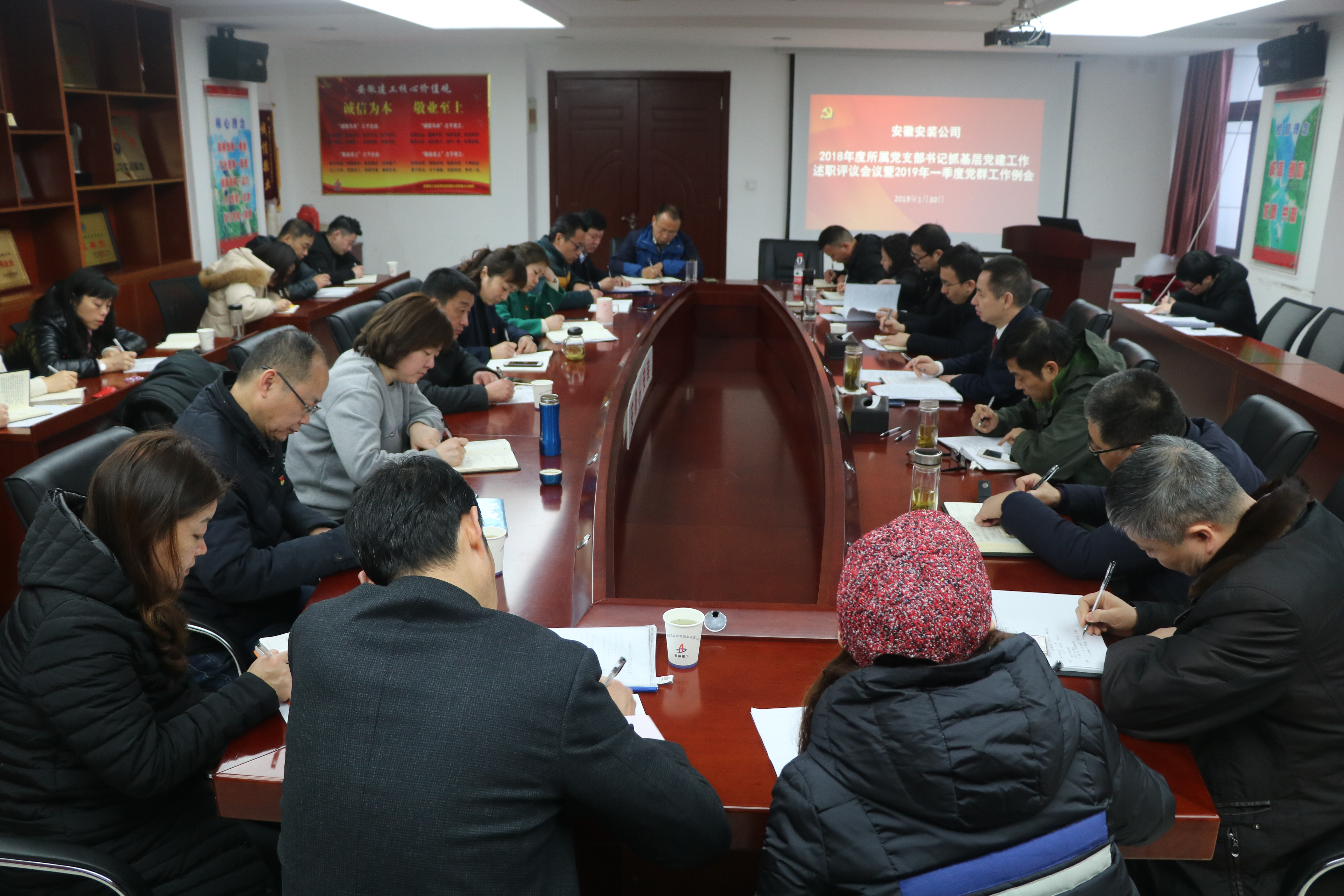 1月30日上午,安徽安裝公司組織召開2018年度所屬黨支部書記抓基層黨建工作述職評(píng)議會(huì)議。會(huì)議由公司黨委書記、董事長(zhǎng)胡六中主持。集團(tuán)公司黨委工作部楊光兵到會(huì)指導(dǎo)。公司領(lǐng)導(dǎo)班子成員,基層黨支部書記、工會(huì)主席、團(tuán)支部書記及公司黨群部門人員參加了會(huì)議。