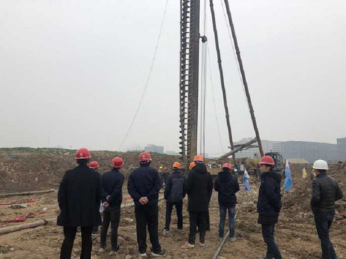 2019年3月5日,蚌埠分公司淮河試驗(yàn)研究中心項(xiàng)目第一根長(zhǎng)螺旋樁試樁成功,成功打響了工程試樁“第一錘。