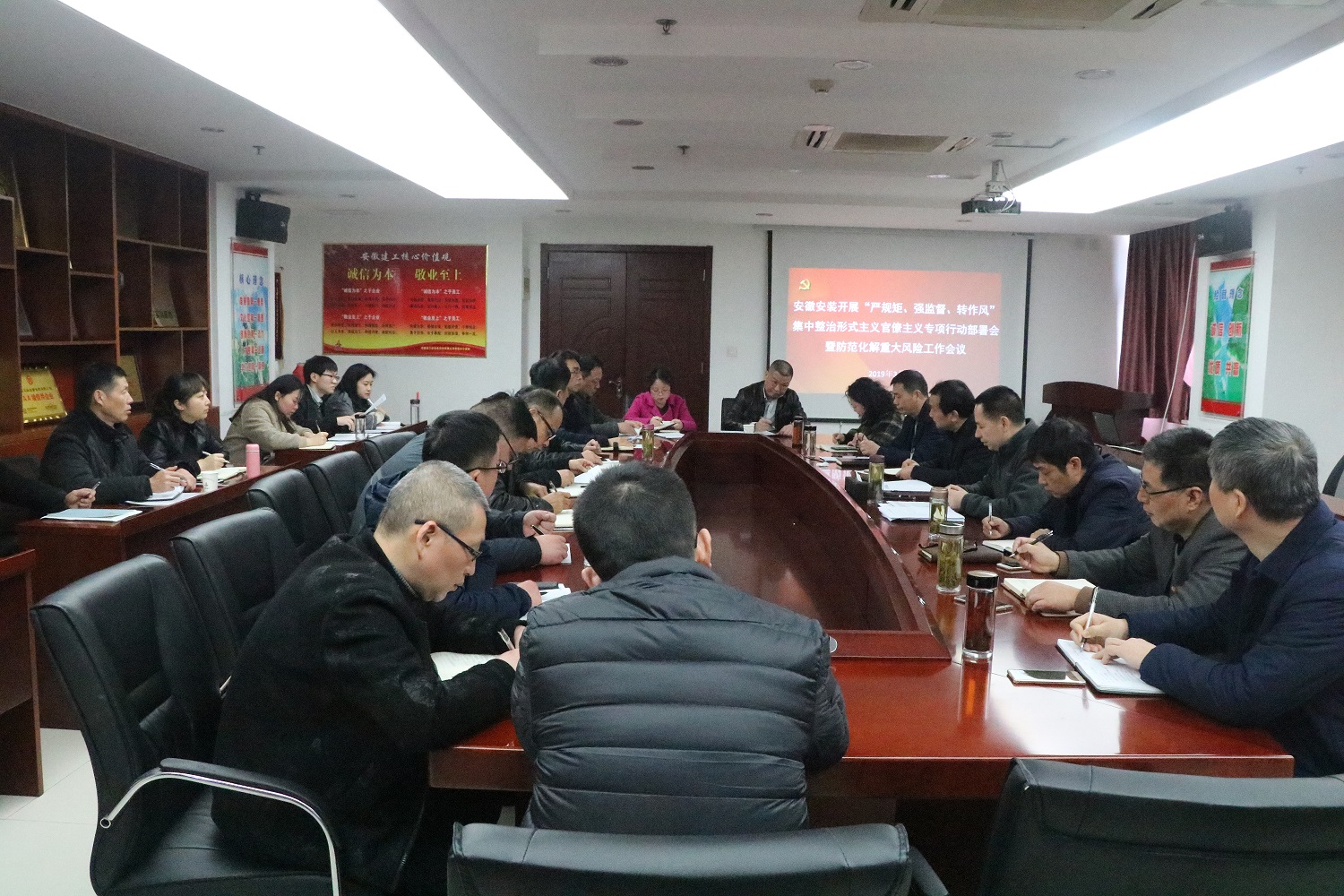 會(huì)上,傳達(dá)學(xué)習(xí)了集團(tuán)所屬單位黨委書記抓黨建述職評(píng)議會(huì)和集中整治形式主義官僚主義專項(xiàng)行動(dòng)推進(jìn)會(huì)暨防范化解重大風(fēng)險(xiǎn)工作會(huì)議精神,部署了《安徽安裝公司黨委關(guān)于開(kāi)展“嚴(yán)規(guī)矩、強(qiáng)監(jiān)督、轉(zhuǎn)作風(fēng)”集中整治形式主義官僚主義專項(xiàng)行動(dòng)實(shí)施方案》和《安徽安裝公司黨委關(guān)于堅(jiān)決打好防范化解重大風(fēng)險(xiǎn)攻堅(jiān)戰(zhàn)的安排意見(jiàn)》,成立了集中整治專項(xiàng)行動(dòng)領(lǐng)導(dǎo)小組和防范化解重大風(fēng)險(xiǎn)工作領(lǐng)導(dǎo)小組。