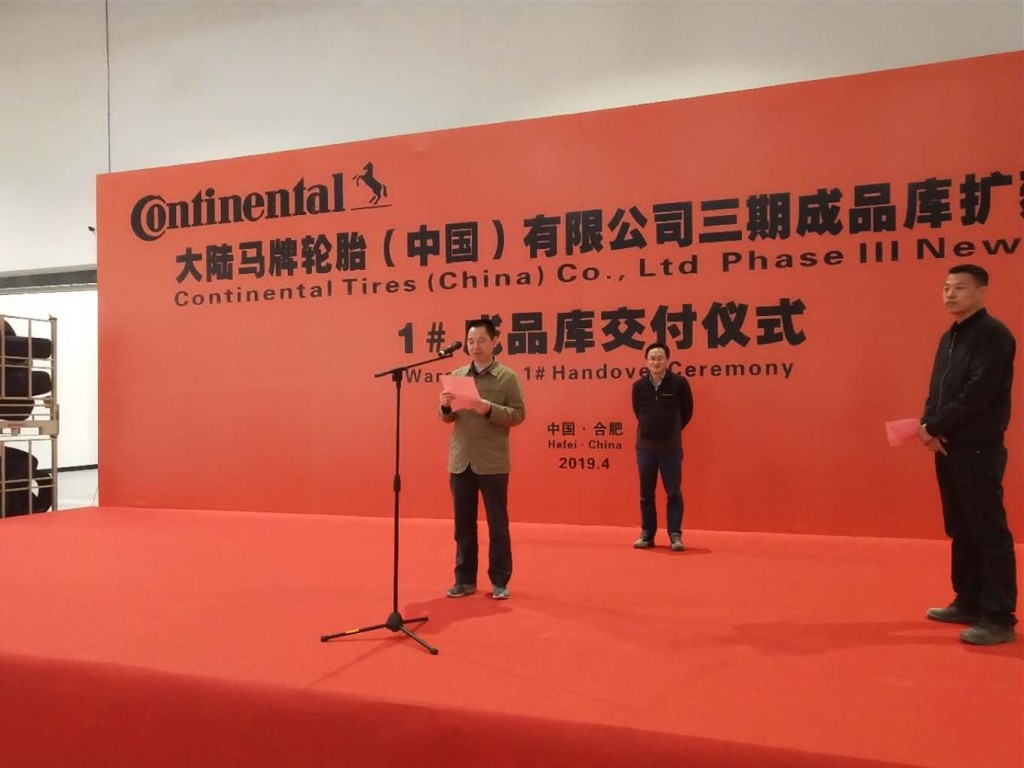 2019年4月4日上午,由安徽省工業(yè)設(shè)備安裝有限公司承建的大陸馬牌輪胎三期成品庫擴建項目1#成品庫竣工暨交付儀式在1#成品庫內(nèi)隆重舉行。安徽安裝公司黨委書記、董事長胡六中,大陸馬牌輪胎合肥工廠總經(jīng)理王小驥,項目管理公司及監(jiān)理公司等相關(guān)人員出席儀式。項目經(jīng)理李冬主持交付儀式。