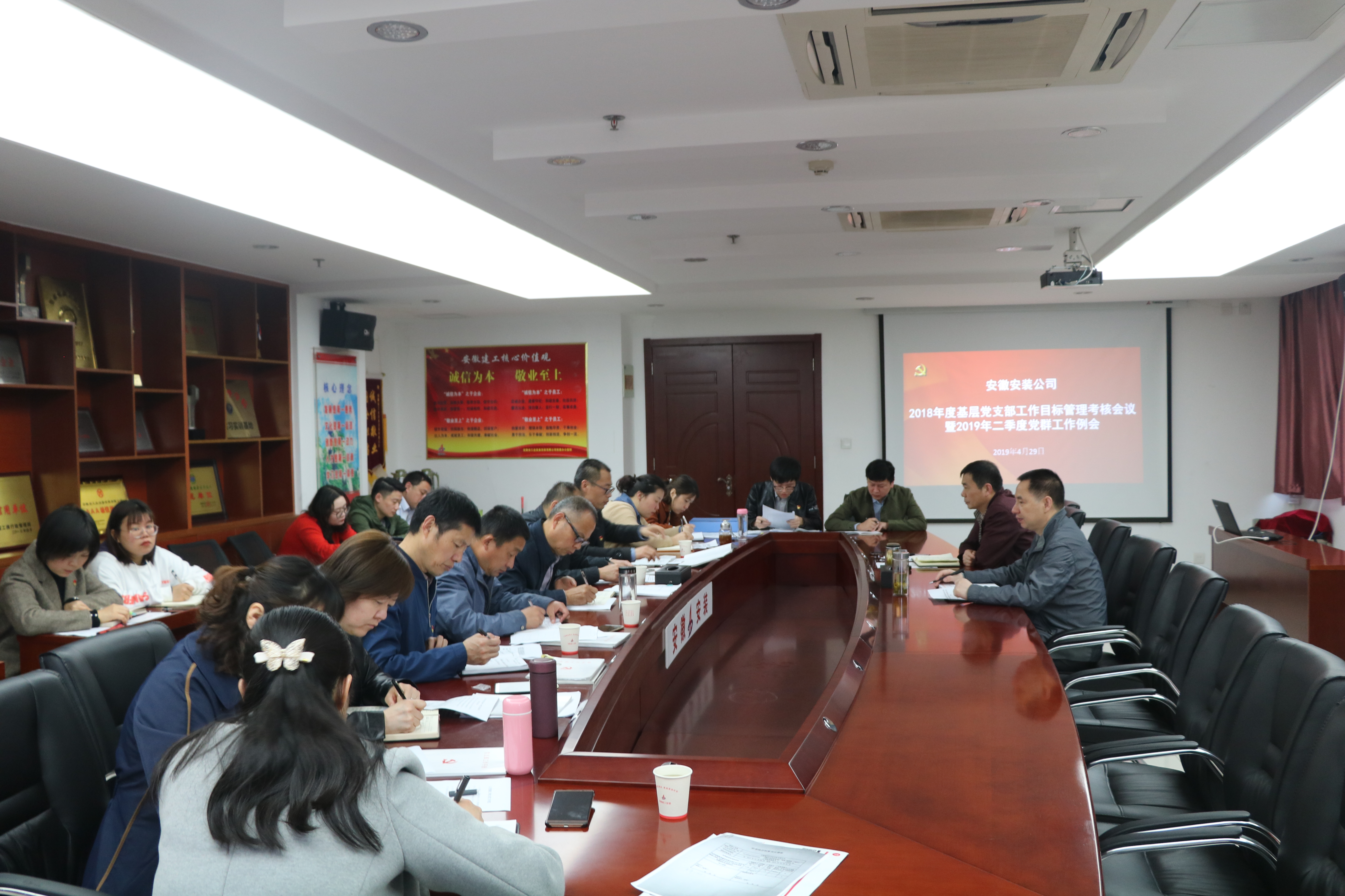 4月29日上午,安徽安裝公司召開(kāi)2019年二季度黨群例會(huì)。會(huì)議由公司紀(jì)委書(shū)記、工會(huì)主席李寬旭主持,公司黨委書(shū)記、董事長(zhǎng)胡六中出席會(huì)議,所屬各基層黨支部書(shū)記、工會(huì)主席、團(tuán)支部書(shū)記及公司黨群部門(mén)人員參加了會(huì)議。