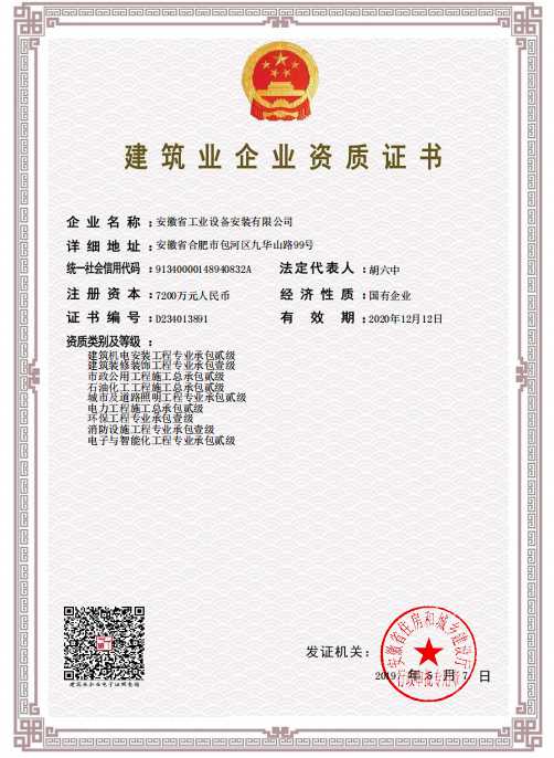 此次資質(zhì)升級工作,經(jīng)營公司在領(lǐng)導(dǎo)的帶領(lǐng)指導(dǎo)和各部門的協(xié)調(diào)配合下,通力合作,經(jīng)過一個(gè)月與安徽省住房和城鄉(xiāng)建設(shè)廳的對接、溝通及資料的傳遞,獲得碩果。這標(biāo)志著公司資質(zhì)等級又上新臺階,為公司的持續(xù)發(fā)展奠定了堅(jiān)實(shí)的基礎(chǔ),是公司發(fā)展史上的又一里程碑。截至目前,公司工程施工資質(zhì)業(yè)務(wù)范圍增加為兩個(gè)總承包壹級資質(zhì)(機(jī)電工程施工總承包壹級、建筑工程施工總承包壹級)和四個(gè)專業(yè)承包壹級資質(zhì)(消防設(shè)施工程專業(yè)承包壹級、建筑裝修裝飾工程專業(yè)承包壹級、鋼結(jié)構(gòu)工程專業(yè)承包壹級、環(huán)保工程專業(yè)承包壹級)。