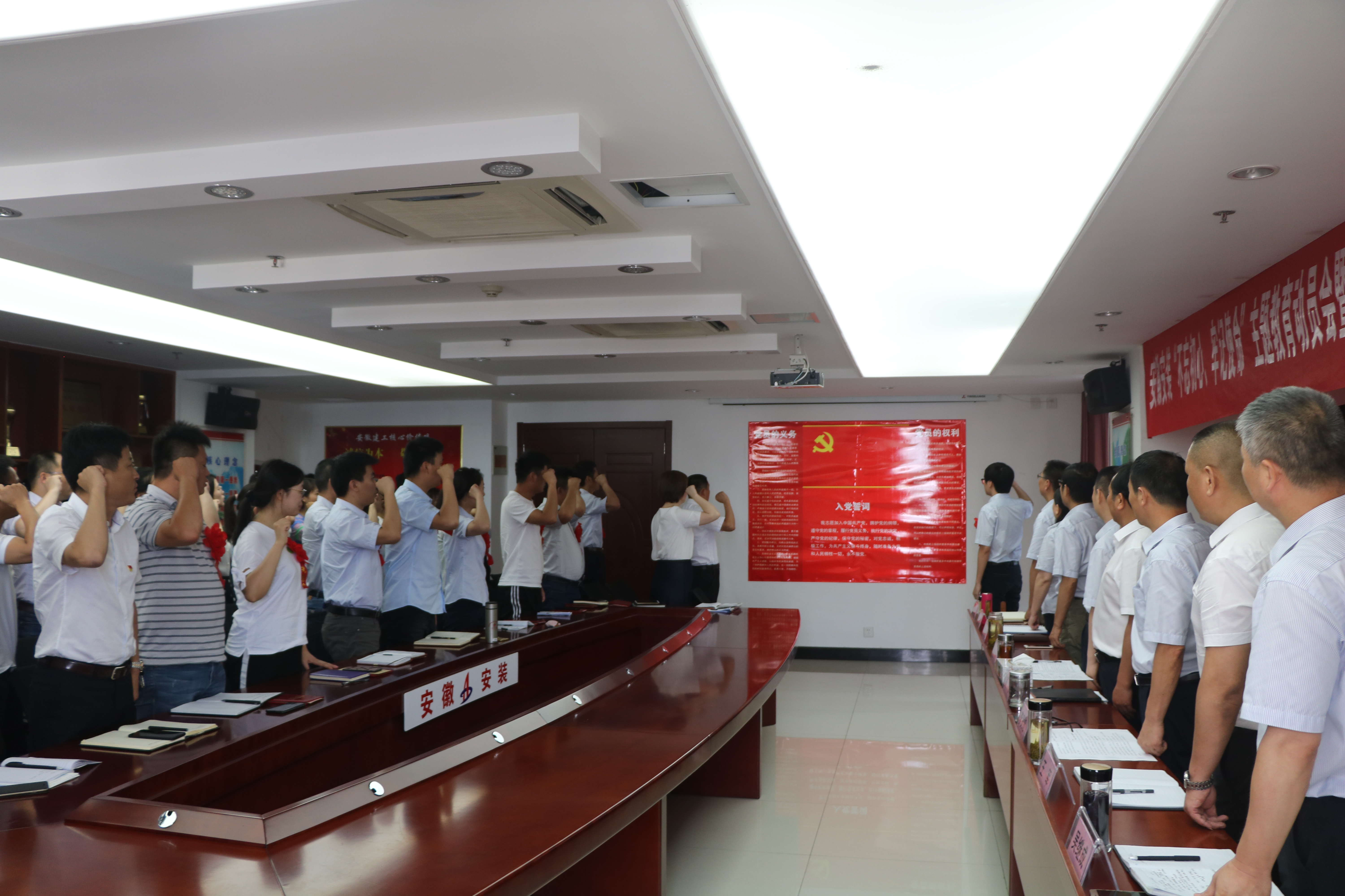胡六中指出,開(kāi)展“不忘初心、牢記使命”主題教育,是使廣大黨員樹(shù)牢理想信念,堅(jiān)定政治立場(chǎng),貫徹落實(shí)習(xí)近平新時(shí)代中國(guó)特色社會(huì)主義的重要舉措。我們要始終牢記中國(guó)共產(chǎn)黨人的初心和使命,加強(qiáng)組織紀(jì)律,解決好目前工作中存在的問(wèn)題,不斷提升基層黨支部的黨建工作水平,充分發(fā)揮其戰(zhàn)斗堡壘作用。公司全體黨員干部要重點(diǎn)圍繞習(xí)近平總書(shū)記對(duì)領(lǐng)導(dǎo)干部提出的“五個(gè)過(guò)硬”要求立形象、作標(biāo)桿,以“我將無(wú)我,不負(fù)人民”的境界和擔(dān)當(dāng),堅(jiān)定理想信念,站穩(wěn)政治立場(chǎng),勇?lián)?dāng)、敢作為,以永不懈怠的精神狀態(tài)和一往無(wú)前的奮斗姿態(tài),搶抓機(jī)遇,扎實(shí)苦干,為推動(dòng)安徽安裝實(shí)現(xiàn)高質(zhì)量發(fā)展而不懈奮斗!