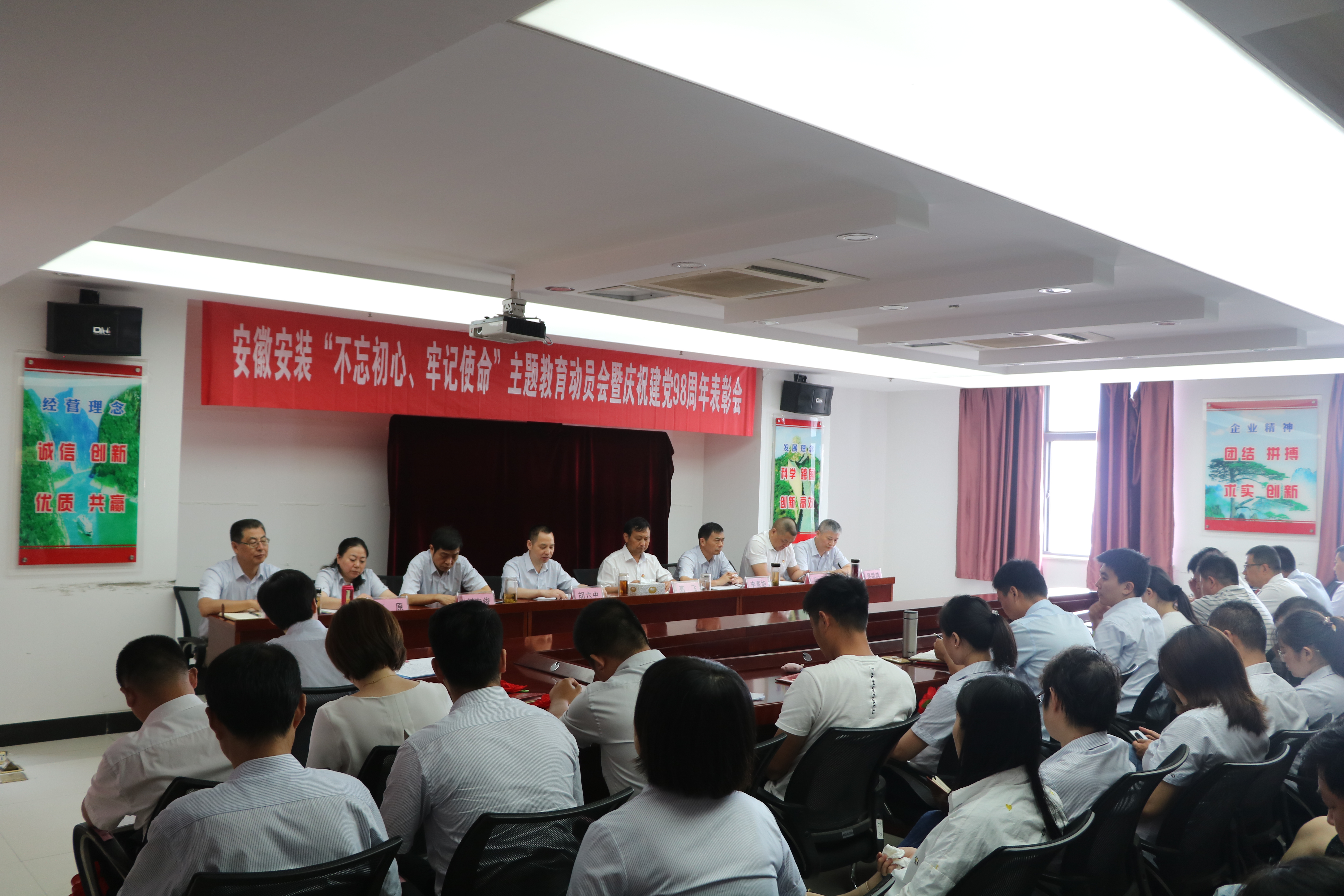 為慶祝中國(guó)共產(chǎn)黨建黨98周年,扎實(shí)開(kāi)展好“不忘初心、牢記使命”主題教育,不斷提升基層黨建工作整體水平。6月27日上午,安徽安裝公司黨委召開(kāi)慶祝建黨98周年表彰會(huì)暨黨課報(bào)告會(huì)。公司領(lǐng)導(dǎo)班子成員、機(jī)關(guān)部門(mén)正副職、機(jī)關(guān)在崗黨員、分公司領(lǐng)導(dǎo)班子成員和受表彰的先進(jìn)基層黨組織、優(yōu)秀共產(chǎn)黨員和優(yōu)秀黨務(wù)工作者共70余人參加會(huì)議。會(huì)議由公司紀(jì)委書(shū)記、工會(huì)主席李寬旭主持。