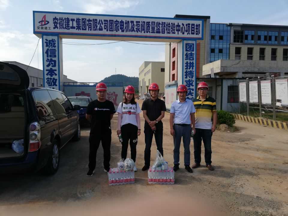 隨后,送清涼小組又趕赴位于涇縣的國家電機及泵閥質量檢驗檢測中心鋼結構廠房安裝項目部,在項目負責人的引領下,深入施工現場,與職工親切交談,詳細詢問項目部員工的工作、生活情況,并叮囑大家一定要注意安全生產。趙經理在現場還要求項目部要堅持以人為本,關心、愛護職工,在做好現場防暑降溫工作的同時,注重職工的飲食衛(wèi)生和夏季防病防疫等工作,加強防暑降溫和中暑急救知識的宣傳教育,確保安全施工。