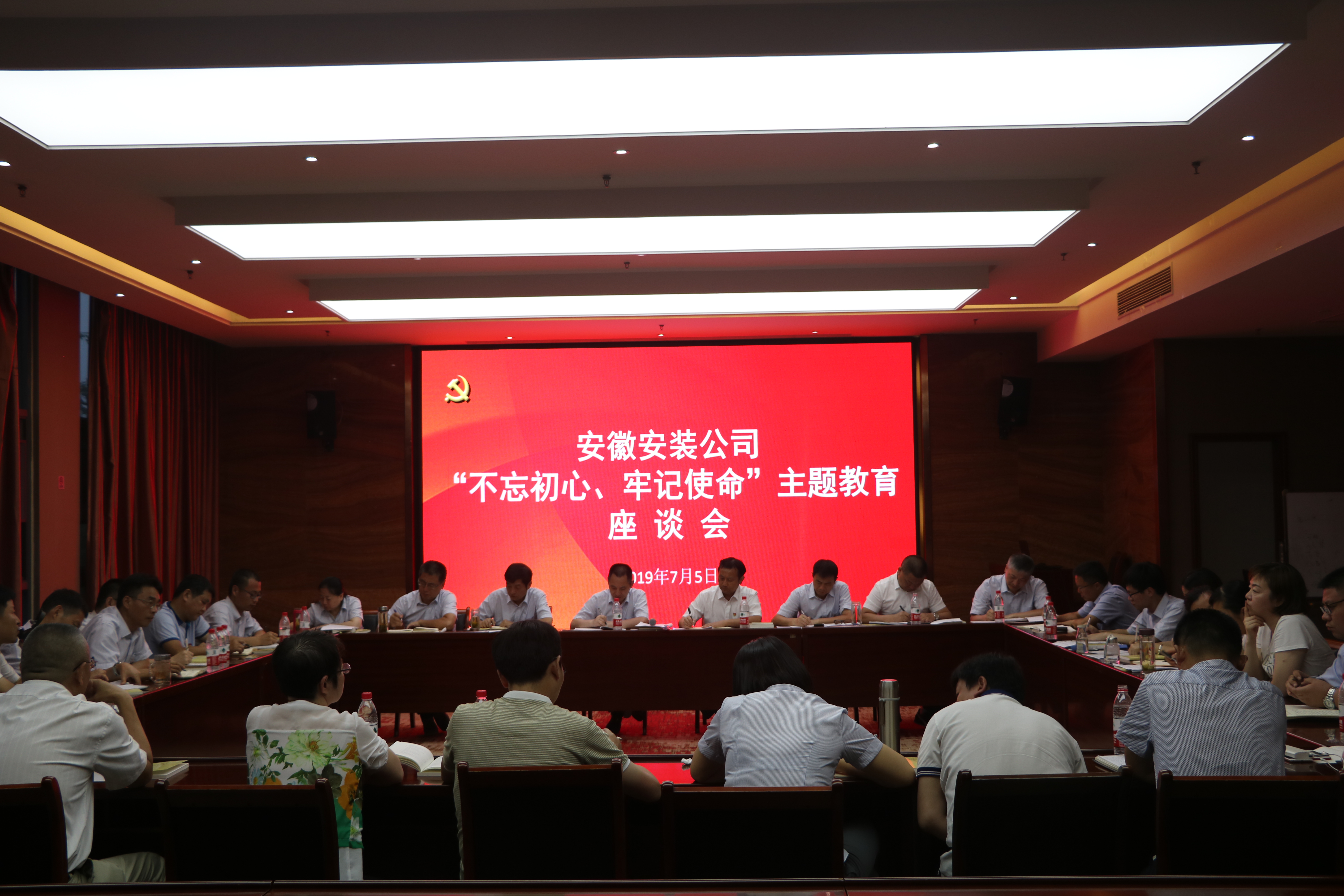 7月5日,安徽安裝公司召開(kāi)“不忘初心、牢記使命”主題教育座談會(huì),公司領(lǐng)導(dǎo)班子成員出席會(huì)議,機(jī)關(guān)部門負(fù)責(zé)人、所屬單位黨政負(fù)責(zé)人參會(huì)。
