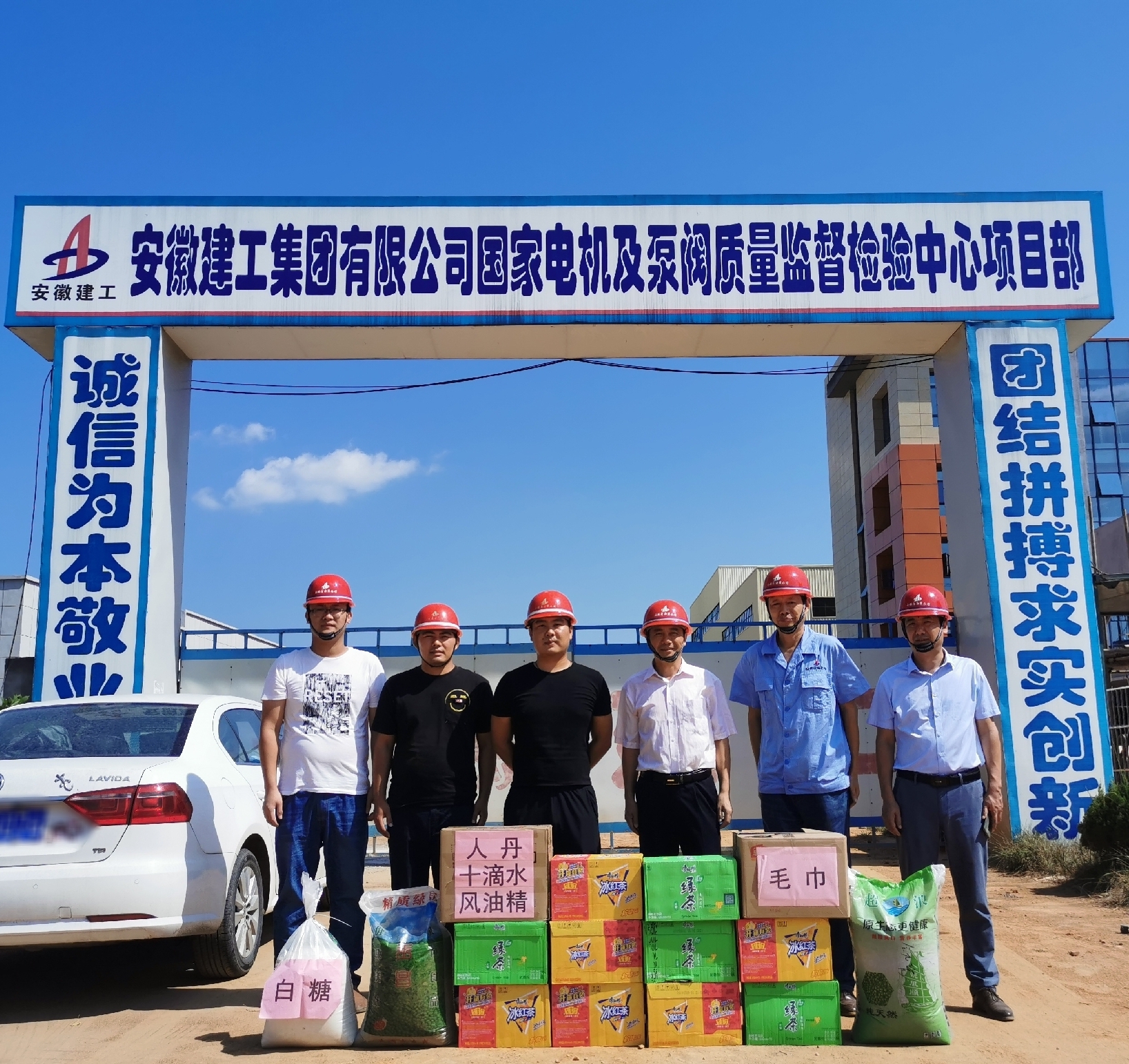 7月29日上午公司領(lǐng)導(dǎo)紀委書記、工會主席李寬旭赴涇縣國家電機及泵閥質(zhì)量監(jiān)督檢驗檢測中心A鋼結(jié)構(gòu)廠房安裝工程項目部給現(xiàn)場施工人員送來夏日的清涼。公司領(lǐng)導(dǎo)帶來了白糖、綠豆、十滴水、藿香正氣等夏日所需防暑降溫的食品、藥品,親自送到一線每位員工手中,為沉悶炎熱的工地送來絲絲涼意。