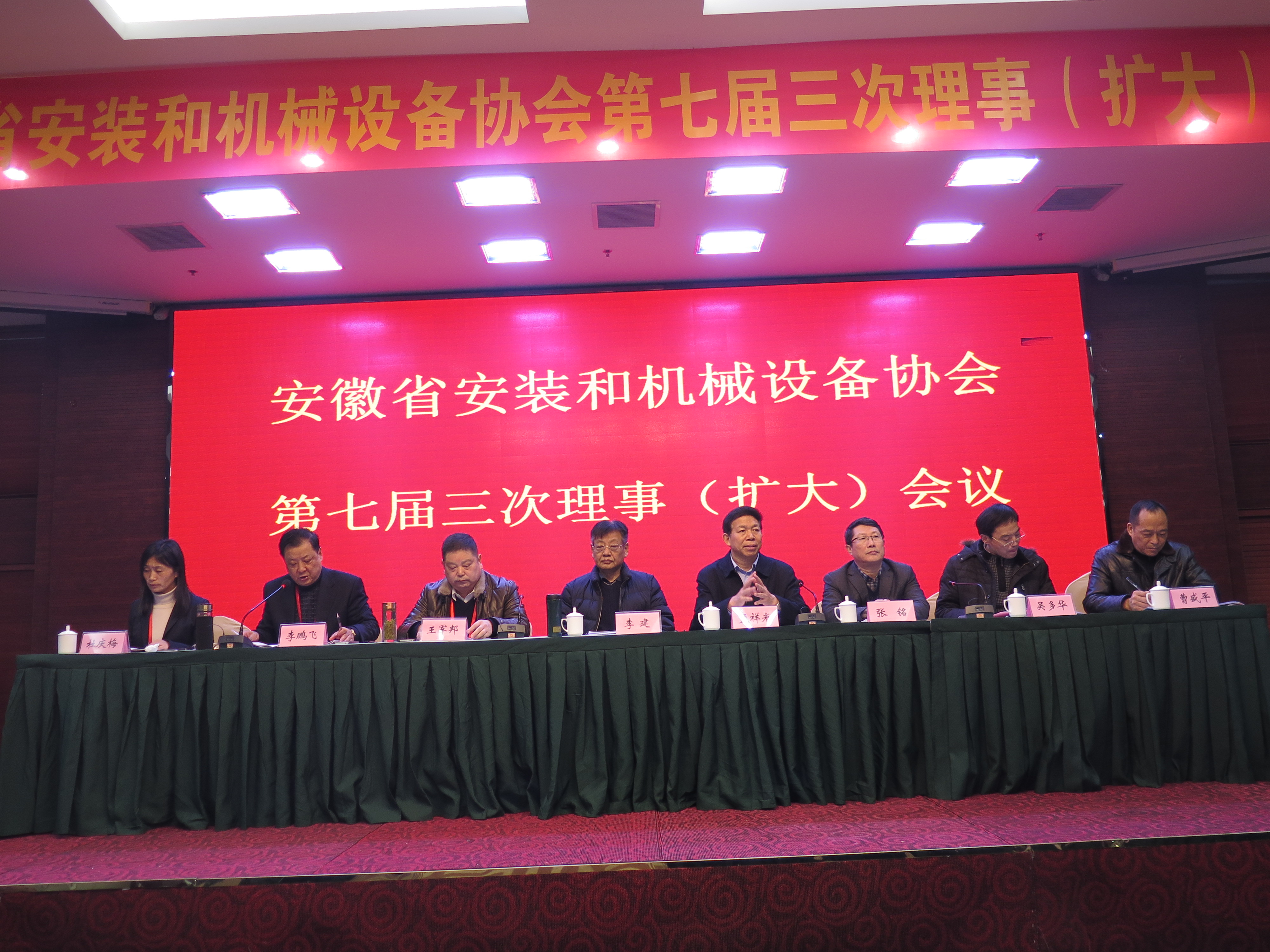 新年伊始,萬象更新,2019年1月3日-4日,安徽省安裝和機(jī)械設(shè)備協(xié)會(huì)在安徽蚌埠召開第七屆三次理事(擴(kuò)大)會(huì)議。安徽建工集團(tuán)有限公司總經(jīng)理助理、協(xié)會(huì)會(huì)長(zhǎng)、法定代表人王軍邦,駐會(huì)副會(huì)長(zhǎng)李鵬飛,秘書長(zhǎng)杜慶梅,蚌埠市政協(xié)副主席、秘書長(zhǎng)孟祥光,蚌埠市住建委黨委書記、主任張銘,安慶市建筑管理處副主任吳多華,六安市建筑工程質(zhì)量安全監(jiān)督站副站長(zhǎng)曹盛平等領(lǐng)導(dǎo)出席會(huì)議。會(huì)議特邀安徽省政協(xié)常委、原安徽省住房和城鄉(xiāng)建設(shè)廳巡視員李建作建筑行業(yè)轉(zhuǎn)型升級(jí)發(fā)展的專題報(bào)告。各市縣行業(yè)主管部門負(fù)責(zé)人,副會(huì)長(zhǎng)、理事和會(huì)員單位負(fù)責(zé)人、專家、聯(lián)絡(luò)員及受表彰的企業(yè)代表,受表彰的 2017-2018年度“協(xié)會(huì)之友”、領(lǐng)取職稱證書的企業(yè)代表等近300人參會(huì)。會(huì)議由副會(huì)長(zhǎng)李鵬飛主持。