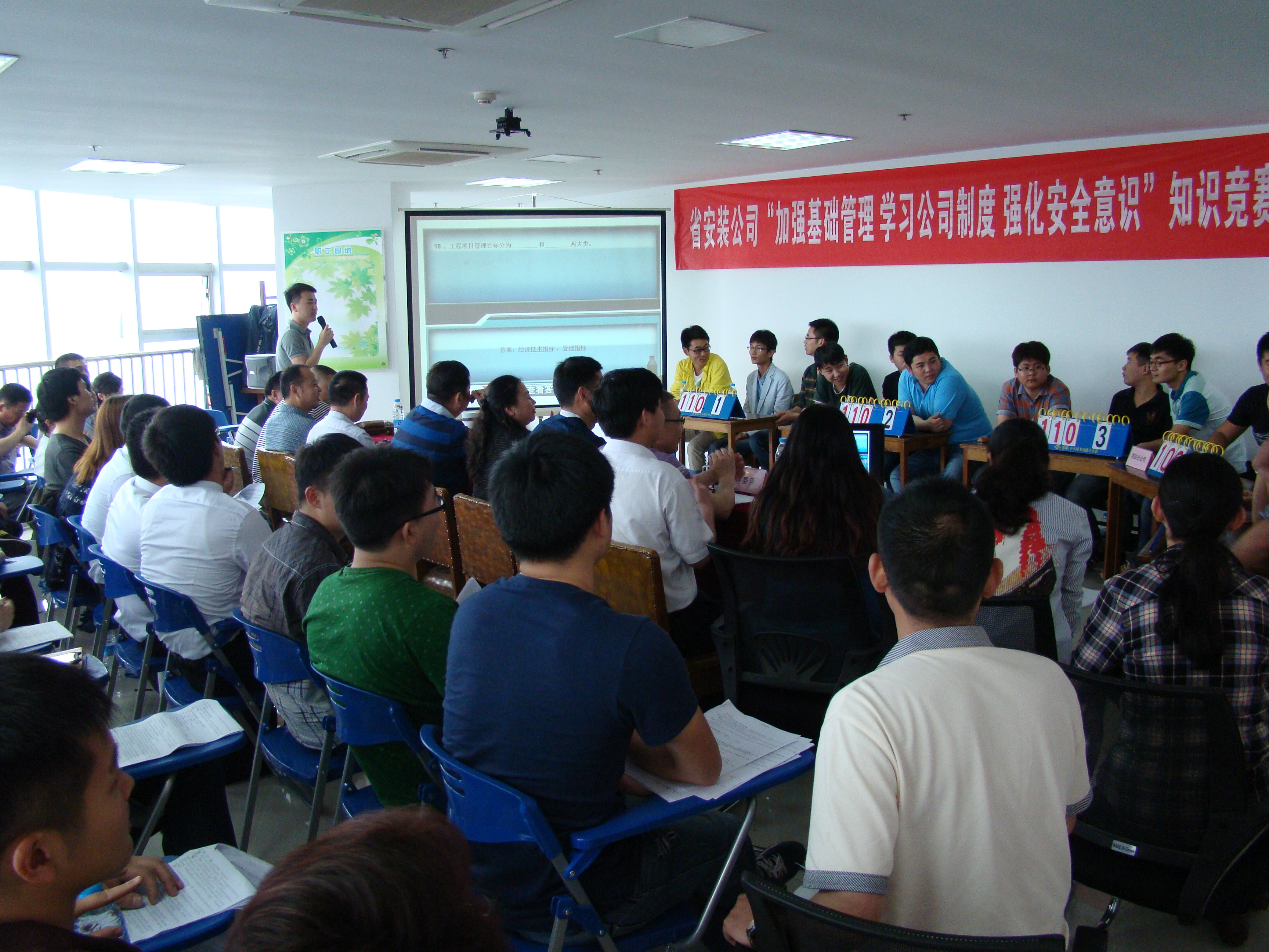 為了充分展現(xiàn)職工積極好學(xué)的精神風(fēng)貌,促進(jìn)職工掌握企業(yè)制度和專業(yè)知識(shí),激勵(lì)大家不斷學(xué)習(xí)、不斷進(jìn)步。5月15日下午,公司在職工之家舉辦了“加強(qiáng)基礎(chǔ)管理、學(xué)習(xí)公司制度、強(qiáng)化安全意識(shí)”知識(shí)競(jìng)賽。公司董事長(zhǎng)、總經(jīng)理王軍邦,黨委副書記、紀(jì)委書記胡六中,工會(huì)主席李原到現(xiàn)場(chǎng)觀看比賽,并為選手們鼓勁加油。