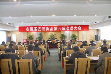 安徽省安裝協(xié)會第六屆會員大會于2009年12月28日在安徽合肥八一賓館隆重召開。來自全省50多家企業(yè)78名新老會員代表參加了此次大會。中國安裝協(xié)會秘書長楊存成,安徽省建設(shè)廳副廳長李建、副巡視員王茂新,安徽省民政廳社團(tuán)管理局王世剛處長等領(lǐng)導(dǎo)蒞臨會議。中國安裝協(xié)會、上海市安裝協(xié)會、江蘇省安裝行業(yè)協(xié)會、浙江省安裝行業(yè)協(xié)會、山東省安裝協(xié)會、四川省建筑業(yè)協(xié)會及安徽省建筑業(yè)協(xié)會等兄弟協(xié)會發(fā)來賀信、賀電。