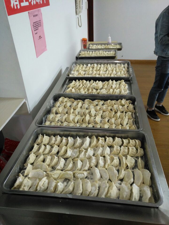 公司工會和后勤保障部為本次活動作了精心的籌備,協(xié)調(diào)職工食堂準(zhǔn)備好了各種材料,參加活動的女職工自帶刀具、搟面杖。上午9時(shí)許,30多名女職工齊聚職工食堂。她們個個大顯身手,忙得不亦樂乎……你和面,我搟皮,她包餃子,一道道工序有條不紊,只見女職工們一手托著餃子皮,一手夾著肉餡,舞動著靈巧的手指,一個個精致漂亮、形態(tài)各異、不乏創(chuàng)意十足的餃子就在她們手中成形,在托盤里擺開陣勢,形成了一道靚麗的風(fēng)景。就在你追我趕、歡聲笑語、交流手藝中,1200多個餃子新鮮出爐!有的女職工還不忘把自己的作品拍照傳到微信朋友圈中“曬曬”。臨近中午,餃子下鍋了,誘人的香氣四散開來,令人垂涎欲滴。女職工們你盛一碗,我盛一碗,與剛剛下班的男職工們圍座在一起,一邊回味著活動的快樂,一邊品嘗著勞動的成果,其樂融融地盡情共享餃子盛宴,共同度過一個輕松愉快且有意義的節(jié)日。