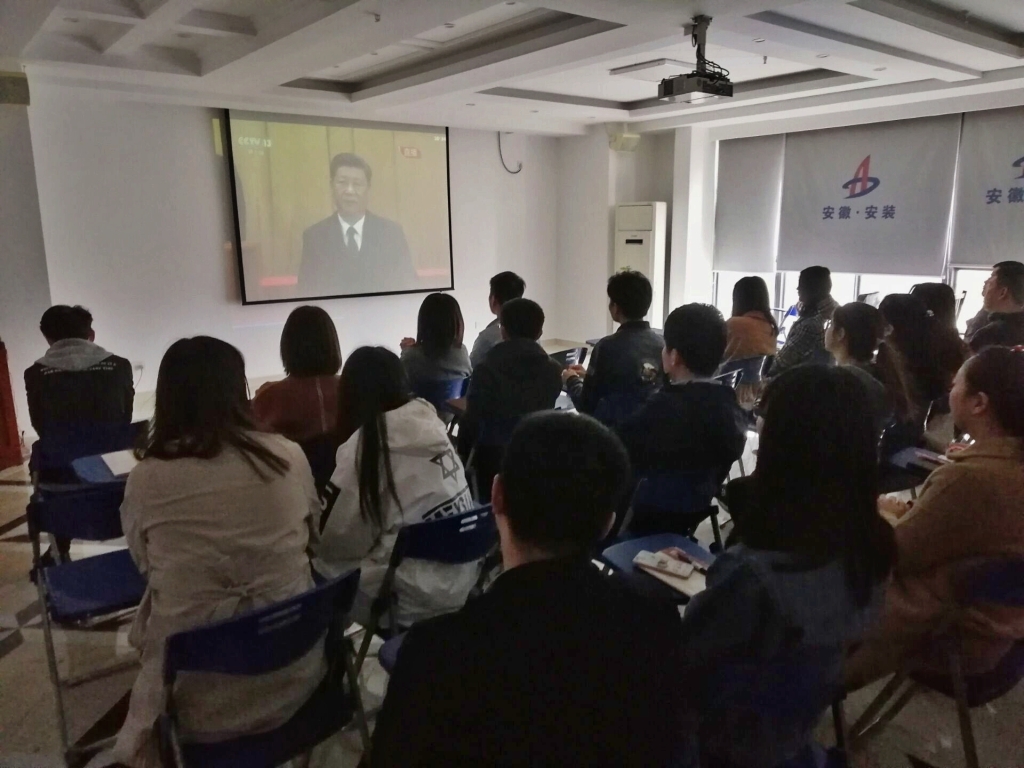 4月30日10時(shí)30分,紀(jì)念五四運(yùn)動(dòng)100周年大會在人民大會堂舉行。安徽安裝團(tuán)委組織團(tuán)員青年集中收看了大會直播,大會在莊嚴(yán)雄偉的國歌中拉開序幕,習(xí)近平總書記發(fā)表重要講話。