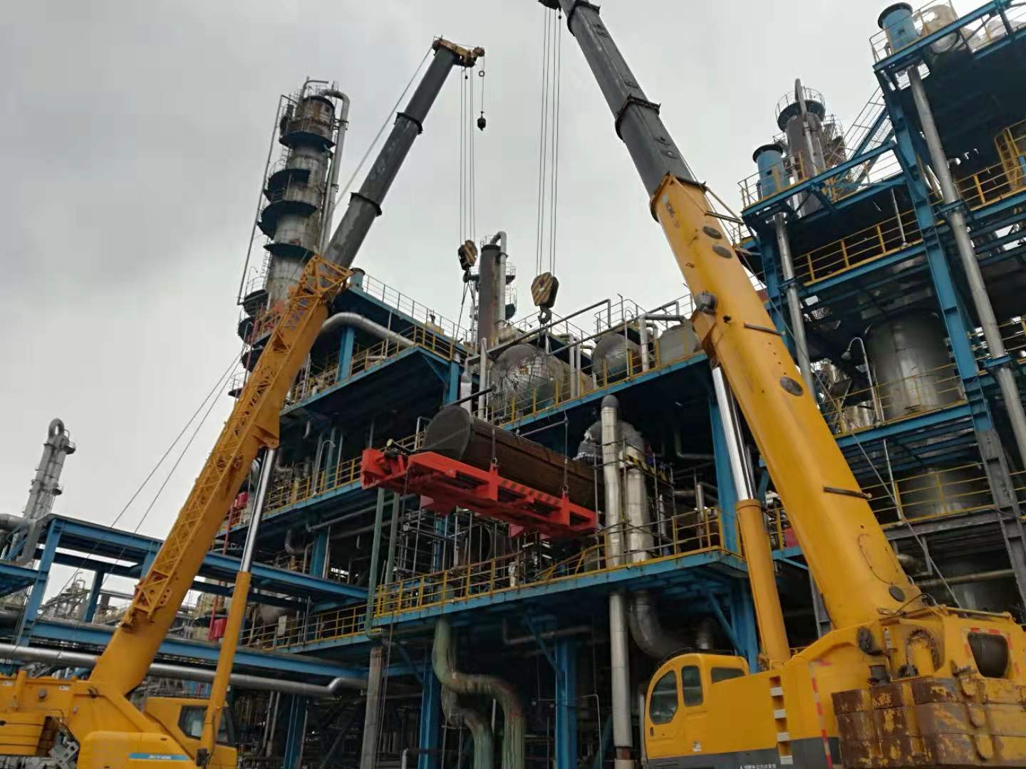 安慶石化大檢修E111大型換熱器管束吊裝成功