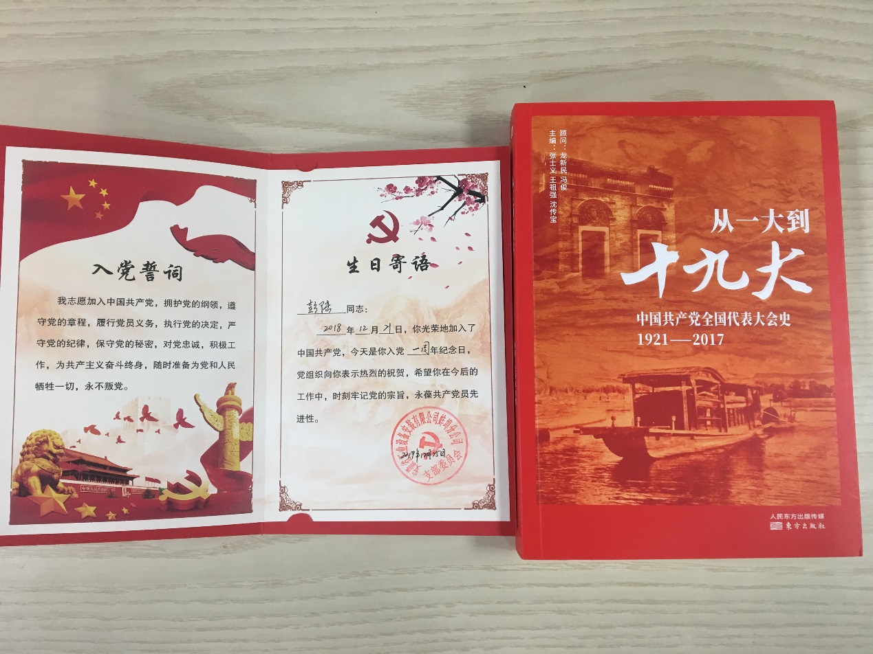 會(huì)上,黨支部書記程茂麗首先宣讀了12月份過(guò)政治生日的黨員名單,接著分別向他們贈(zèng)送“政治生日”賀卡和《從一大到十九大》書籍禮物。隨后,黨員彭陸同志結(jié)合自己入黨一年來(lái)的歷程發(fā)表了生日感言,與大家分享加入黨組織以來(lái)成長(zhǎng)歷程的點(diǎn)點(diǎn)滴滴,并結(jié)合本職工作,展望未來(lái)工作,牢記使命擔(dān)當(dāng)。