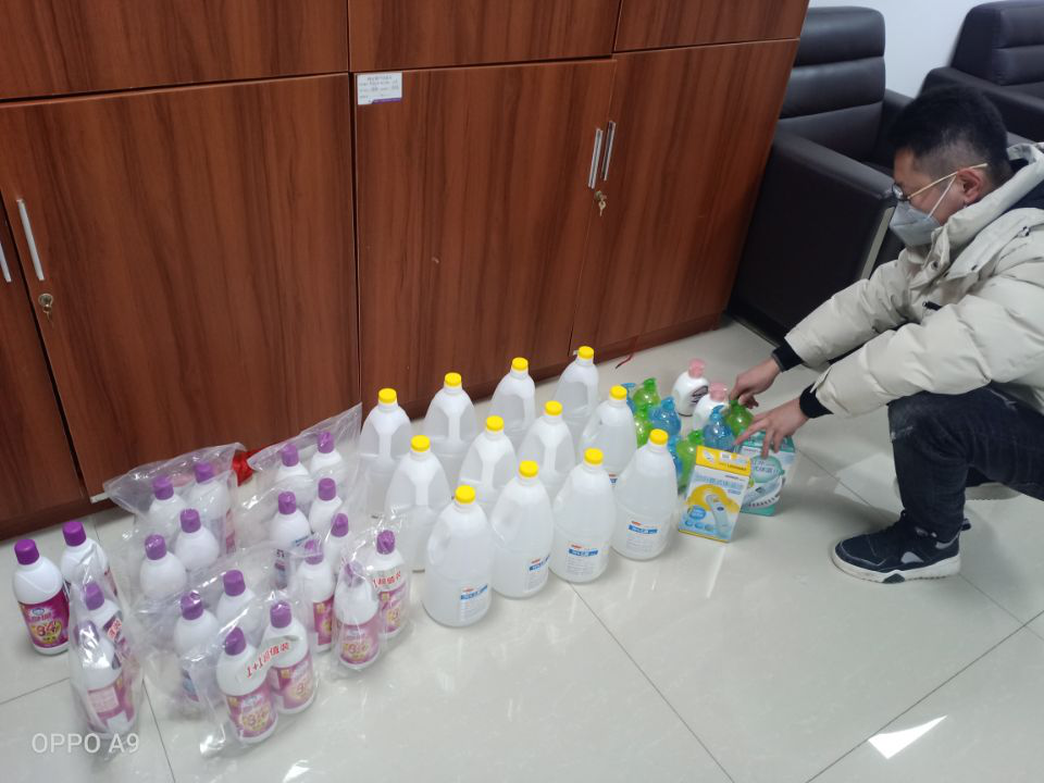 截止目前,經(jīng)他聯(lián)系采辦的分公司防護物資已有 3把體溫槍、3000個口罩、 60瓶酒精消毒液、 130瓶84消毒液、550只手套、10個噴壺等。