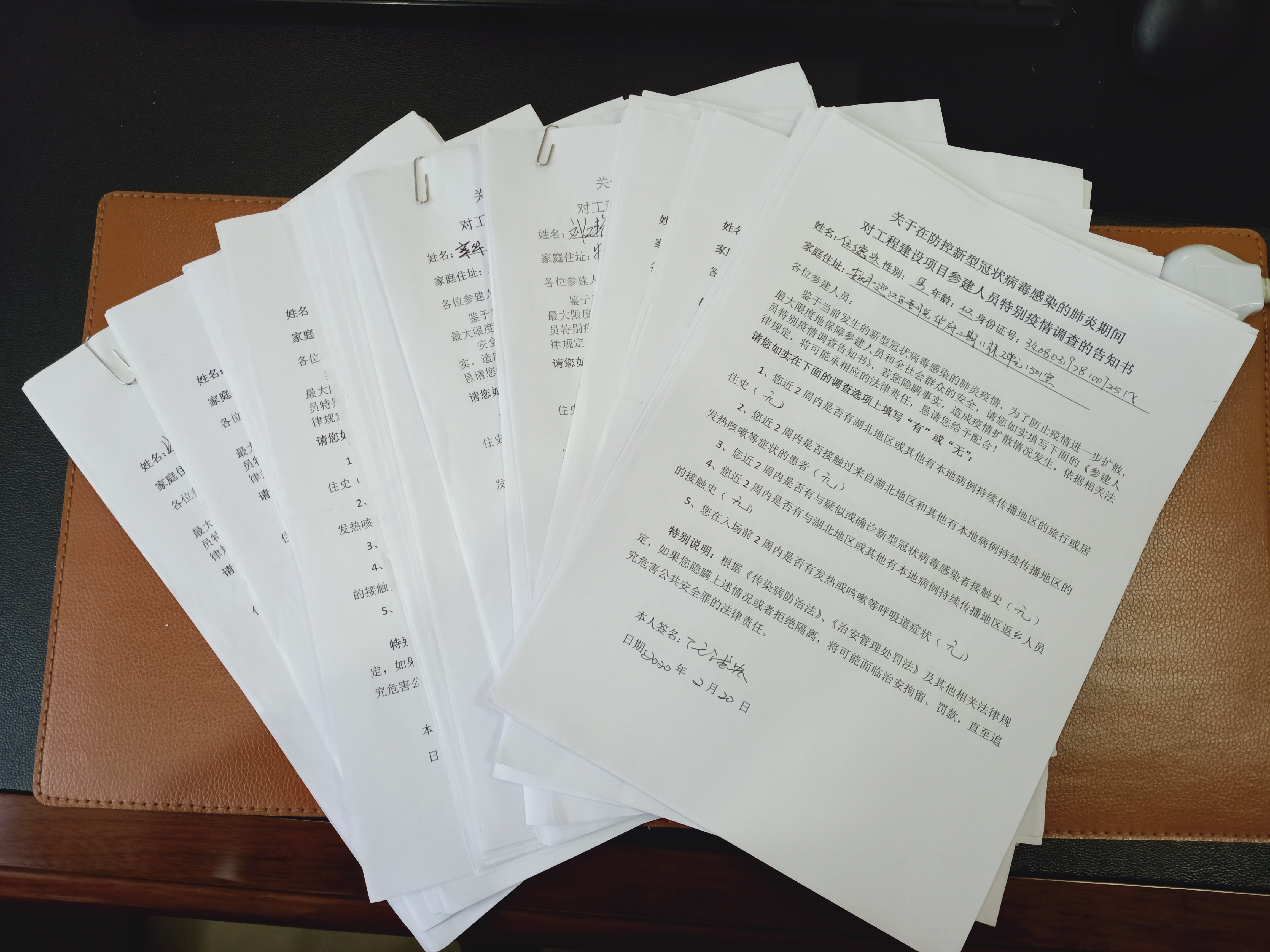 為了解疫情防控期間員工真實(shí)出行和健康情況,項(xiàng)目部組織員工通過(guò)運(yùn)營(yíng)商“漫游地查詢”公益服務(wù)和每日健康打卡獲取最近30日出行軌跡和每日健康狀況,要求員工簽署疫情防控告知書。確保無(wú)死角、全覆蓋,嚴(yán)把人員輸入關(guān),從源頭上消滅安全隱患因素。