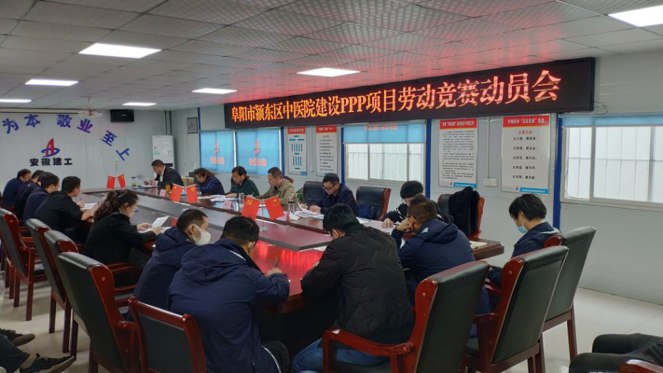 4月8日下午,阜陽(yáng)市潁東區(qū)中醫(yī)院建設(shè)PPP項(xiàng)目部召開2020年勞動(dòng)競(jìng)賽動(dòng)員會(huì)。公司黨委書記、董事長(zhǎng)胡六中,副總經(jīng)理高飛,紀(jì)委書記、工會(huì)主席李寬旭及公司相關(guān)部門人員、房建(裝飾)分公司班子成員及項(xiàng)目部員工參會(huì),會(huì)議由分公司黨支部副書記張曼主持。