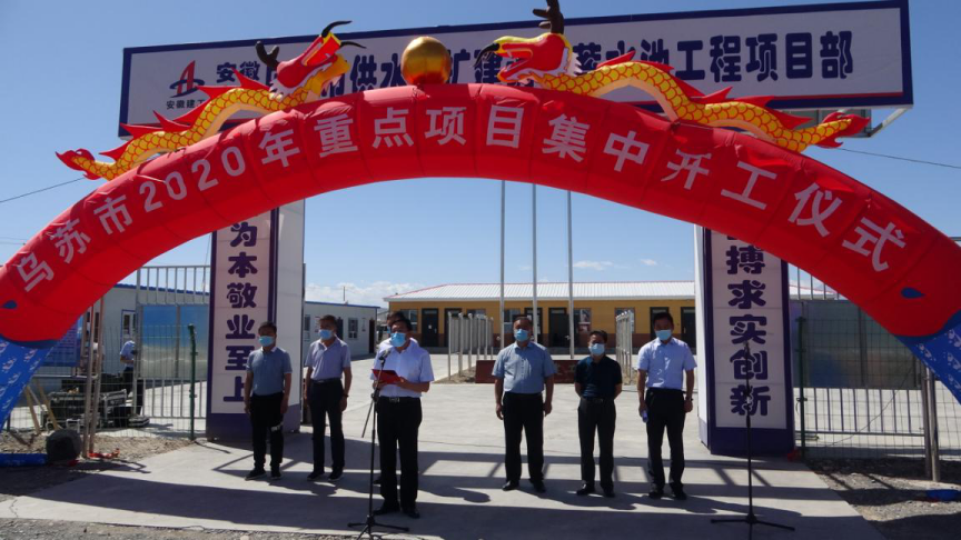 2020年5月28日,烏蘇市2020年重點項目集中開工儀式在烏蘇市供水改擴建調(diào)節(jié)蓄水池工程項目部召開。塔城地區(qū)地委委員阿依丁·托留汗,烏蘇市政協(xié)黨組書記王永安,烏蘇市委常委、常務副市長陳斌,塔城地區(qū)水利局、國土資源局等相關(guān)部門領(lǐng)導及項目各參建單位參加開工儀式,開工儀式由陳斌主持。