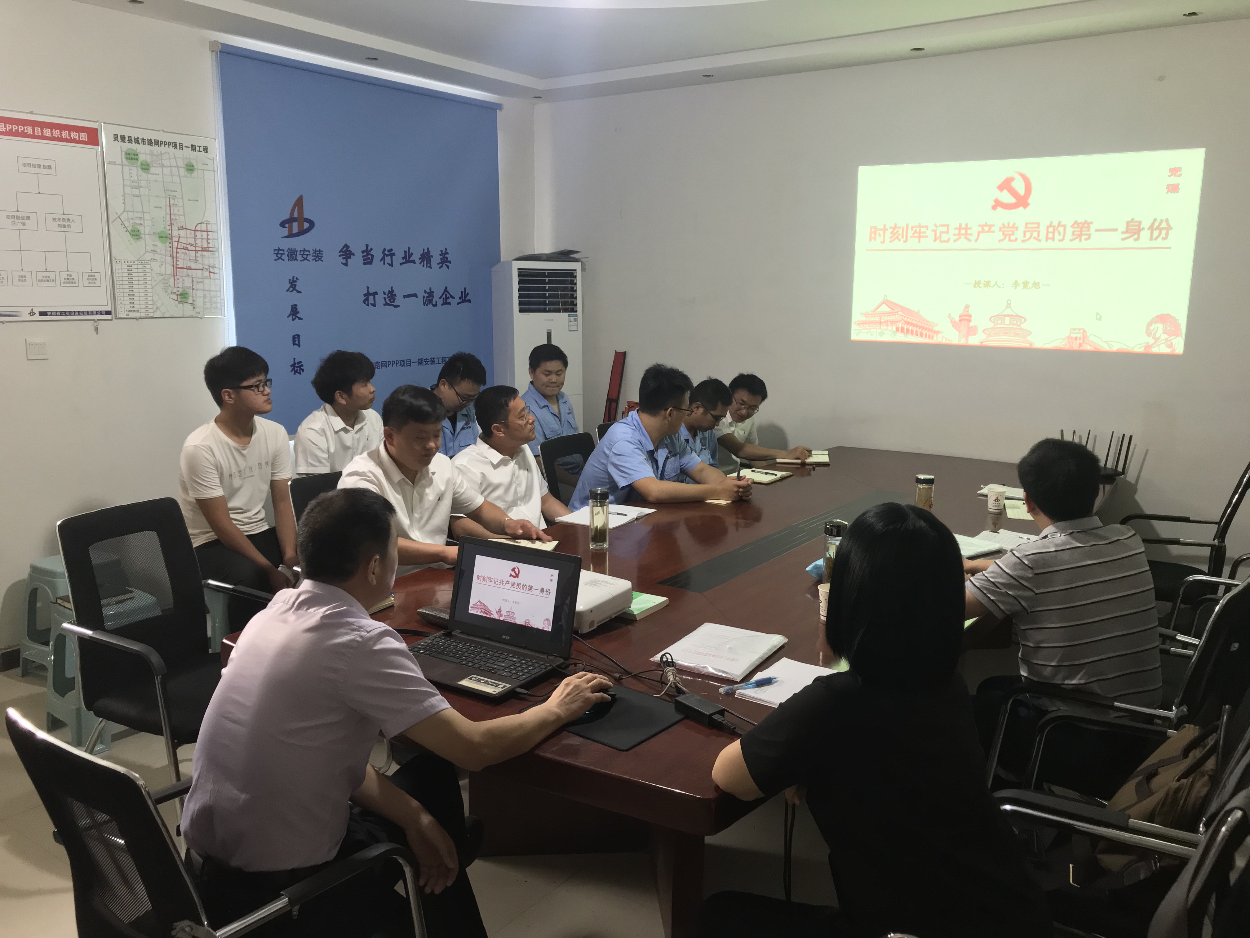 7月14日上午,公司工會(huì)主席、紀(jì)委書記李寬旭赴靈璧璧城市路網(wǎng)PPP項(xiàng)目,結(jié)合企業(yè)實(shí)際和自身感悟,以“時(shí)刻牢記共產(chǎn)黨員的第一身份”為主題,給項(xiàng)目部所有員工上了一堂精彩的黨課。