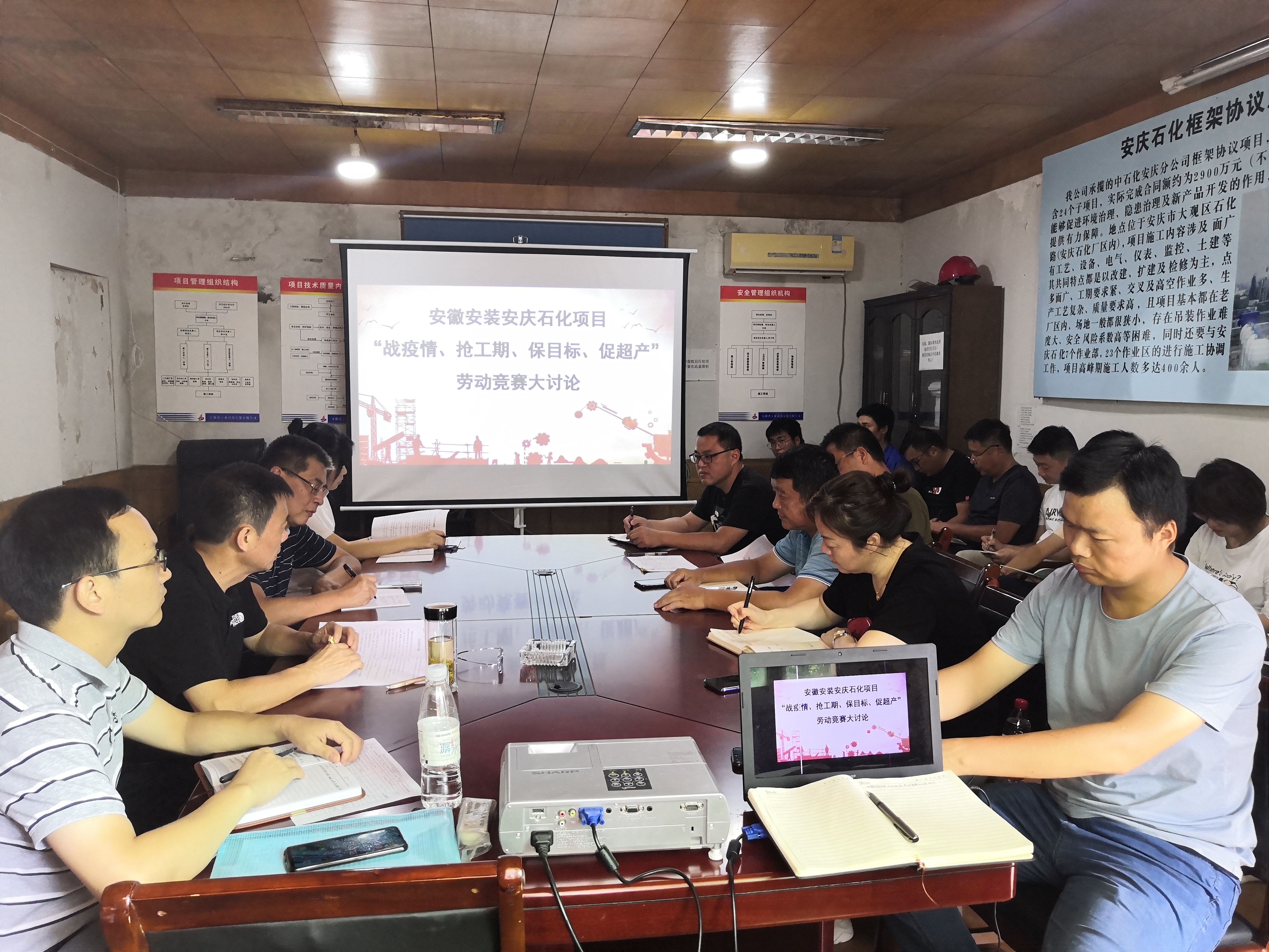 為認(rèn)真貫徹集團(tuán)公司“戰(zhàn)疫情、搶工期、保目標(biāo)、促超產(chǎn)”勞動(dòng)競賽活動(dòng)精神,8月20日上午,安徽安裝公司圍繞“不能按時(shí)交工為恥辱”的履約意識(shí),在安慶石化項(xiàng)目部會(huì)議室組織開展“戰(zhàn)疫情、搶工期、保目標(biāo)、促超產(chǎn)”主題大討論活動(dòng)。公司紀(jì)委書記、工會(huì)主席李寬旭,總會(huì)計(jì)師張?jiān)?,公司相關(guān)部門負(fù)責(zé)人,安慶分公司領(lǐng)導(dǎo)班子成員,項(xiàng)目經(jīng)理、技術(shù)負(fù)責(zé)人等共20余人參加會(huì)議,會(huì)議由李寬旭主持。