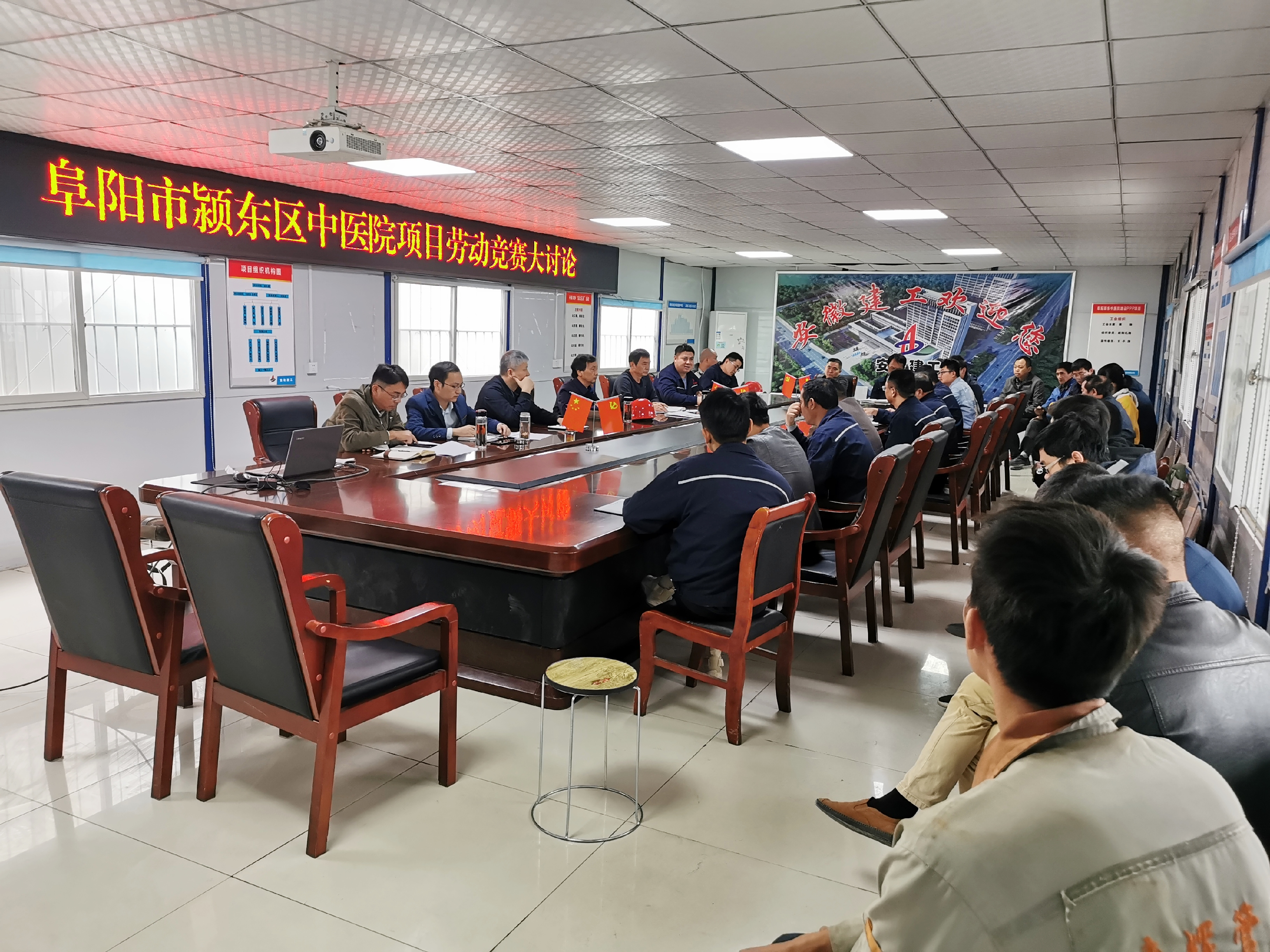 為認(rèn)真貫徹集團(tuán)公司“戰(zhàn)疫情、搶工期、保目標(biāo)、促超產(chǎn)”勞動(dòng)競(jìng)賽活動(dòng)精神,11月5日上午,公司副總經(jīng)理高飛,紀(jì)委書記、工會(huì)主席李寬旭,總工程師吳繼成一行在阜陽潁東區(qū)中醫(yī)院建設(shè)PPP項(xiàng)目部會(huì)議室,組織開展“戰(zhàn)疫情、搶工期、保目標(biāo)、促超產(chǎn)”勞動(dòng)競(jìng)賽大討論,公司相關(guān)部門負(fù)責(zé)人、項(xiàng)目部全體人員30余人參加了會(huì)議,會(huì)議由李寬旭主持。