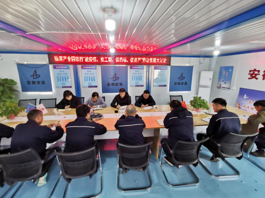 為認(rèn)真貫徹集團(tuán)公司“戰(zhàn)疫情、搶工期、保目標(biāo)、促超產(chǎn)”勞動競賽活動精神,11月19日下午,安徽安裝公司圍繞“不能按時(shí)交工為恥辱”的履約意識,在臨港項(xiàng)目部會議室組織開展“戰(zhàn)疫情、搶工期、保目標(biāo)、促超產(chǎn)”主題大討論活動。公司紀(jì)委書記、工會主席李寬旭,公司相關(guān)部門負(fù)責(zé)人,蚌埠分公司領(lǐng)導(dǎo)班子成員,項(xiàng)目管理人員等共計(jì)20余人參加會議,會議由李寬旭主持。