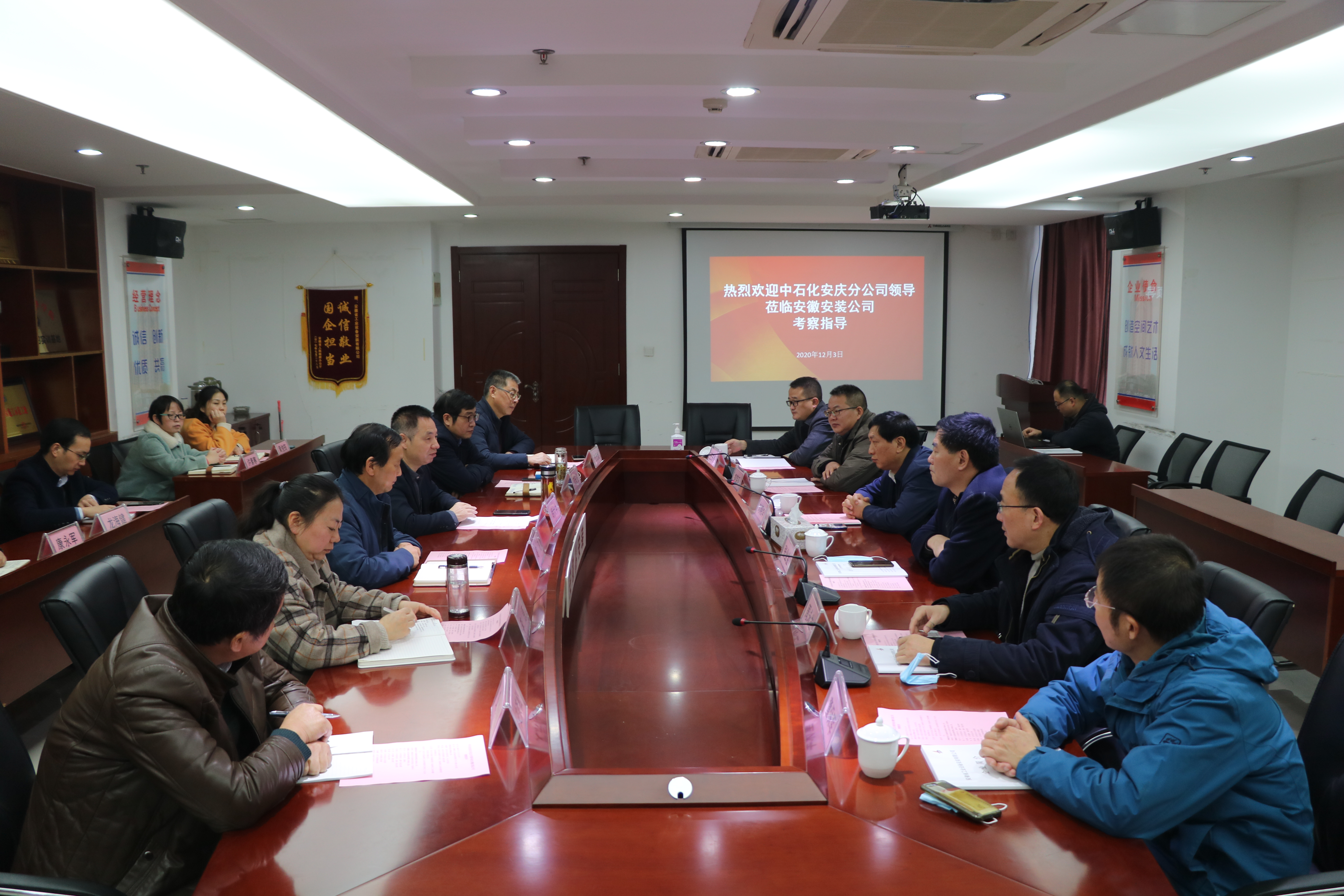 12月3日,中國石化安慶石化公司黨委書記、分公司代表劉曉華,中國石化安慶石化公司副總經(jīng)理張業(yè)金,安徽盈創(chuàng)石化檢修安裝有限公司董事長胡榮昭一行赴安徽安裝公司考察指導(dǎo),并召開座談會。安徽安裝公司黨委書記、董事長胡六中主持會議。