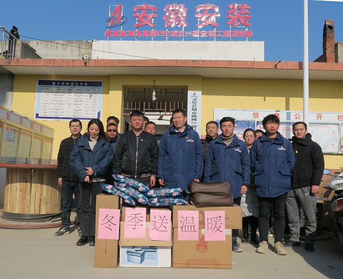 項(xiàng)目經(jīng)理趙磊表示在現(xiàn)在項(xiàng)目搶工的非常時期分公司從資金、人員等各個方面鼎力支援,又在寒冷的冬日及時送來御寒物品,這不僅溫暖了大家的身體,更溫暖了大家的心里。項(xiàng)目部將一如既往,鼓足干勁,發(fā)揮安裝人的精神,干好項(xiàng)目、開拓市場,力爭將安徽安裝的旗幟飄揚(yáng)在靈璧各處!