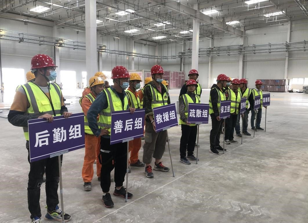 此次應(yīng)急演練的主要內(nèi)容有火災(zāi)撲救、人員疏散和傷員救護等模擬演練,讓員工了解在發(fā)生安全事故時如何進行處置及自救、護救。為了保證本次演練活動順利進行,項目部圍繞“安全第一,確保有序,責(zé)任明確,落實細節(jié)”的原則,認真組織安排人員參與,根據(jù)實際情況確定演練指揮、應(yīng)急疏散、撲救滅火、醫(yī)療救護等小組,并在活動開始前內(nèi)部進行了預(yù)演練。
