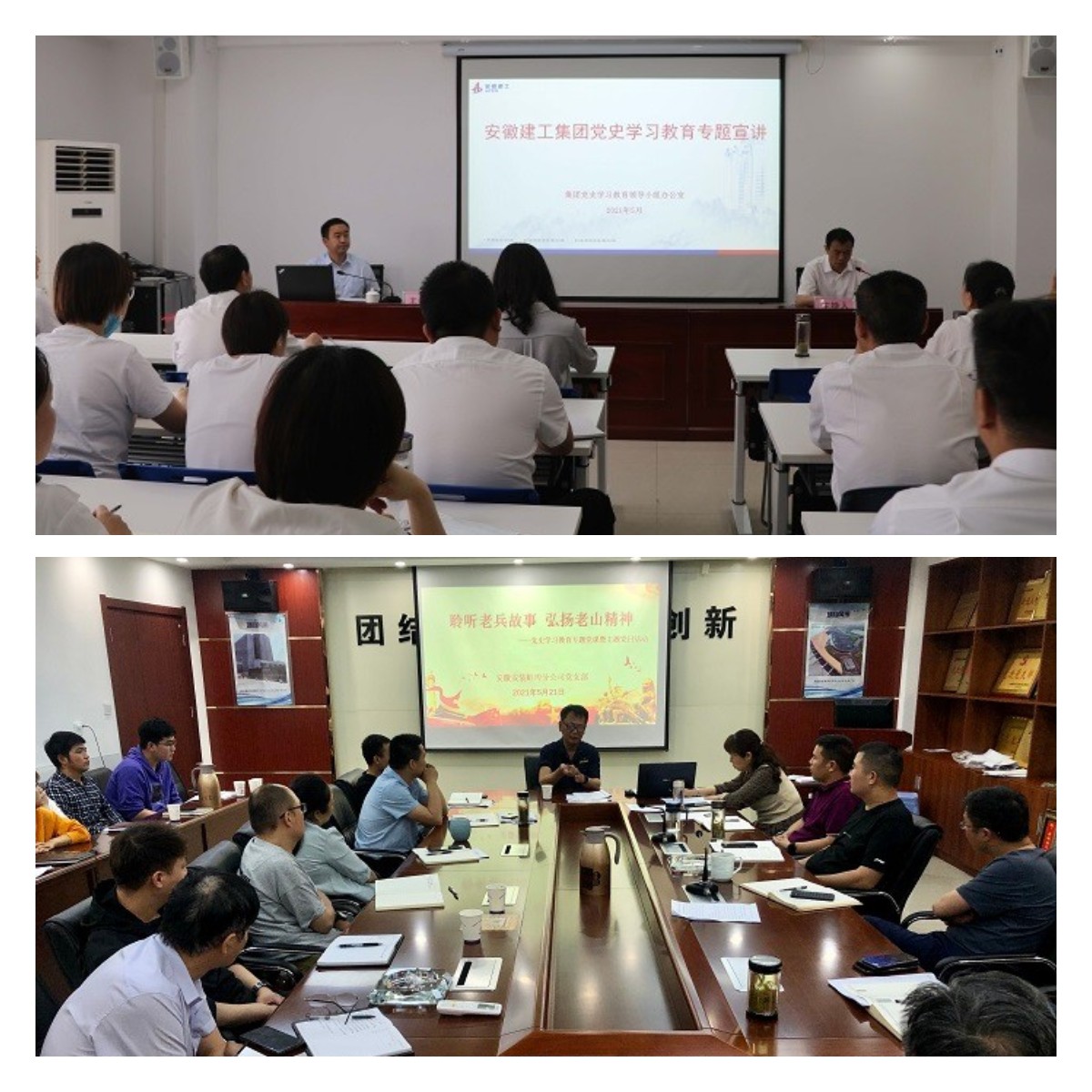 專題宣講課堂。5月27日下午,股份公司黨委委員、副總經(jīng)理黃代,帶領(lǐng)集團(tuán)黨史學(xué)習(xí)教育第十七宣講組成員赴安徽安裝公司開展黨史學(xué)習(xí)教育專題宣講。公司領(lǐng)導(dǎo)班子成員分赴西安、阜陽、蚌埠、合肥等地區(qū)分公司及項(xiàng)目一線作黨史學(xué)習(xí)教育專題黨課報(bào)告。進(jìn)一步將黨史學(xué)習(xí)“送學(xué)”到一線,確保習(xí)總書記在黨史學(xué)習(xí)教育動(dòng)員大會(huì)上的講話精神落實(shí)到基層,確保公司自上而下扎實(shí)開展好黨史學(xué)習(xí)教育,將黨史學(xué)習(xí)教育的成果轉(zhuǎn)化為干事創(chuàng)業(yè)的強(qiáng)大動(dòng)力。蚌埠分公司黨支部組織開展“聆聽老兵故事 弘揚(yáng)老山精神”黨史學(xué)習(xí)教育專題黨課。邀請(qǐng)?jiān)鴧⒓舆^對(duì)越自衛(wèi)反擊戰(zhàn)的退伍老兵為大家上了一堂別開生面的黨課,講述用鮮血和生命捍衛(wèi)國(guó)家領(lǐng)土和民族尊嚴(yán)的崢嶸歲月。