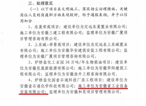 2021年8月10日上午,定遠縣住房和城鄉(xiāng)建設局領導蒞臨壹石通項目檢查指導工作,并于2021年8月18日下文對壹石通項目表彰。