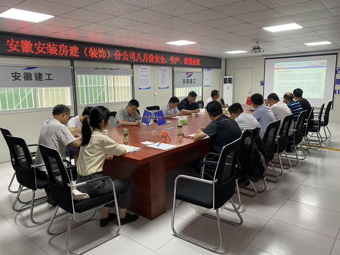 8月28日,房建(裝飾)分公司在潤迅數(shù)據(jù)中心(合肥)產(chǎn)業(yè)園項目部召開8月生產(chǎn)、安全、經(jīng)營工作會議,分公司領(lǐng)導(dǎo)班子成員、所屬各項目主要負(fù)責(zé)人、機關(guān)各部門負(fù)責(zé)人及工程管理部全體成員參加會議,會議由分公司副經(jīng)理徐明東主持。