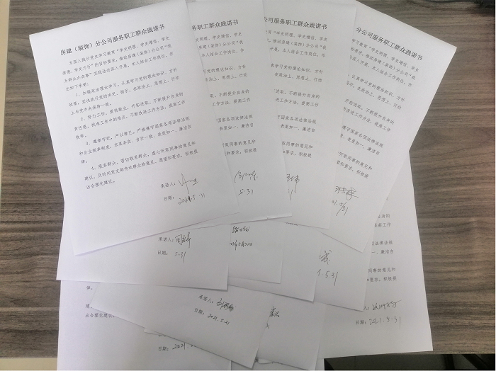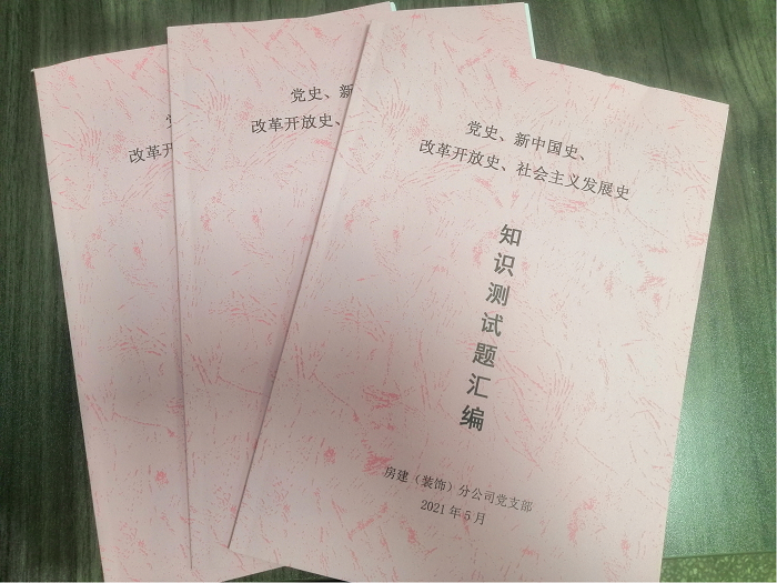 會(huì)議最后,所有與會(huì)人員簽訂了《房建(裝飾)分公司服務(wù)職工群眾踐諾書》,布置下發(fā)了《黨史、新中國史、改革開放史、社會(huì)主義發(fā)展史知識(shí)測(cè)試題匯編》。