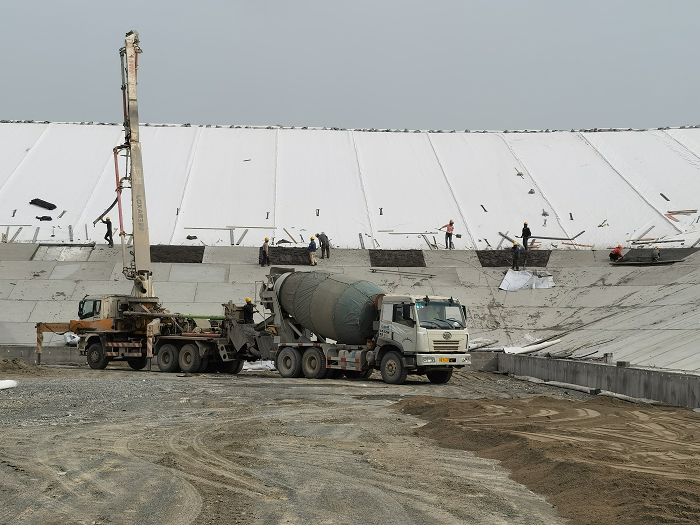壩體混凝土面板澆筑施工現(xiàn)場(chǎng)