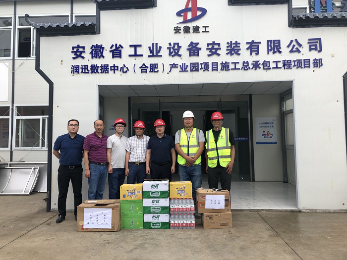 烈日炎炎,酷暑難當(dāng),6月16日,房建(裝飾)分公司黨支部書記王偉攜分公司工程管理部來到潤迅數(shù)據(jù)中心(合肥)產(chǎn)業(yè)園項(xiàng)目,看望和慰問奮戰(zhàn)在一線的員工,為他們送去仁丹、藿香正氣口服液、十滴水、飲料、藥品等防暑降溫物品,實(shí)地察看了項(xiàng)目工地和職工生活區(qū),并與項(xiàng)目同志進(jìn)行了座談交流。