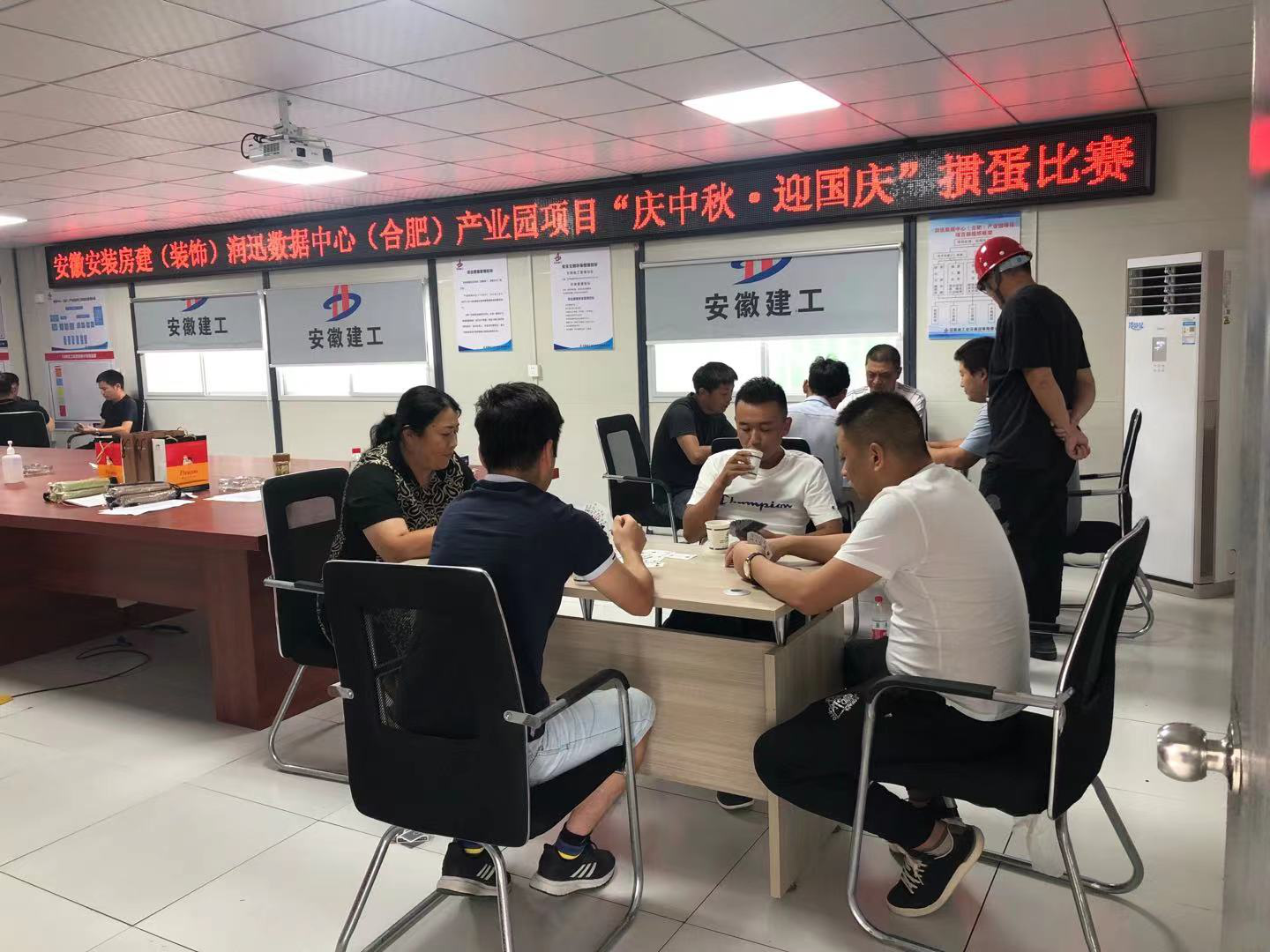 為豐富項(xiàng)目部員工的業(yè)余文化生活,營造員工健康快樂的良好工作氛圍,9月20日下午,房建(裝飾)分公司潤迅數(shù)據(jù)中心(合肥)產(chǎn)業(yè)園項(xiàng)目舉辦了“歡樂中秋·喜迎國慶””摜蛋”比賽。項(xiàng)目部全體成員及各分包隊(duì)計(jì)16名員工參加了本次比賽。
