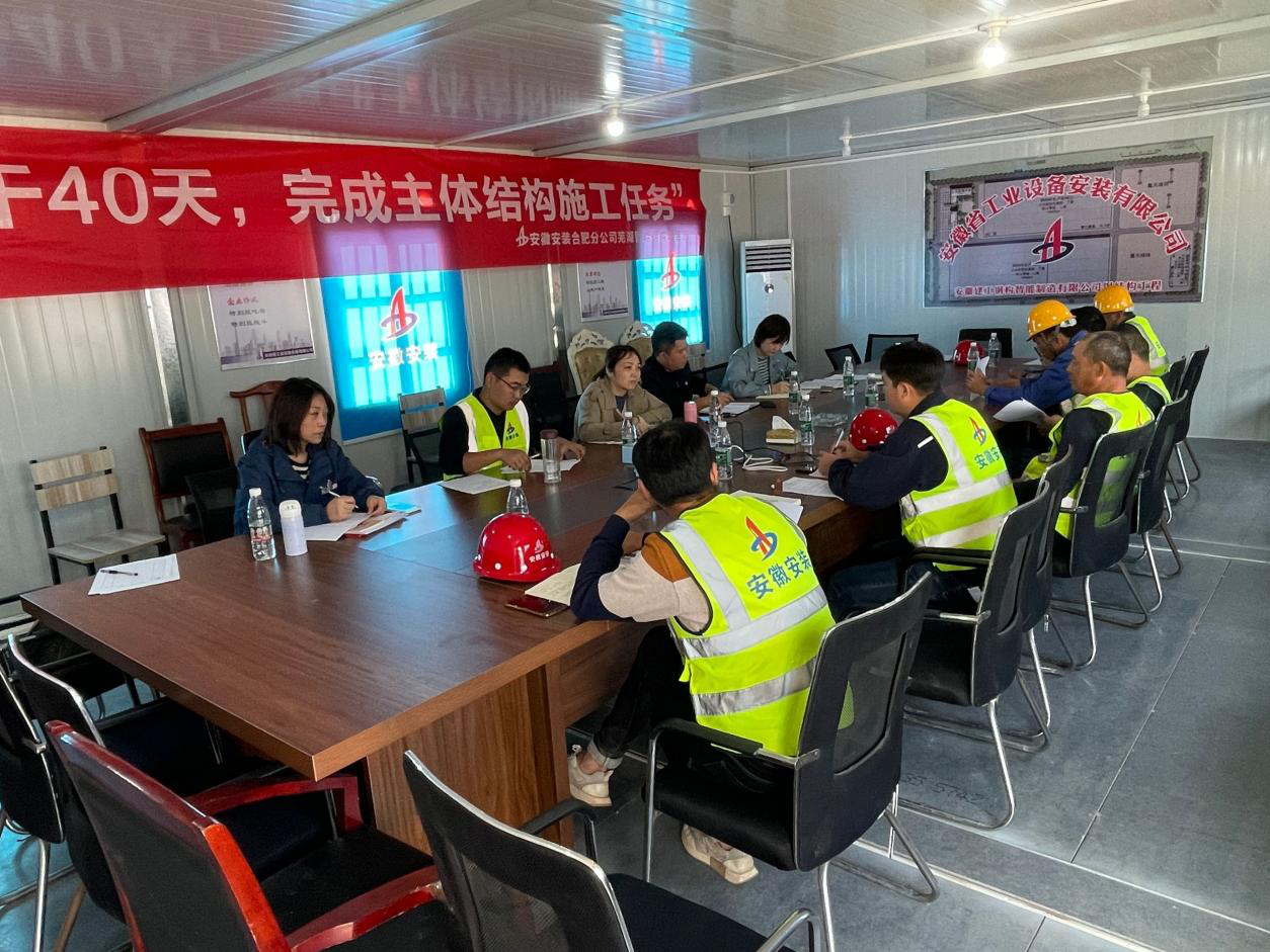 10月29日,安徽安裝合肥分公司建工智能鋼構(gòu)項(xiàng)目在項(xiàng)目部會(huì)議室開展“大干40天,完成主次構(gòu)施工任務(wù)”勞動(dòng)競(jìng)賽大討論。公司紀(jì)委副書記、工會(huì)副主席王敏,合肥分公司副經(jīng)理夏國(guó)祥、工會(huì)副主席杜瓊、項(xiàng)目管理人員等參加會(huì)議。
