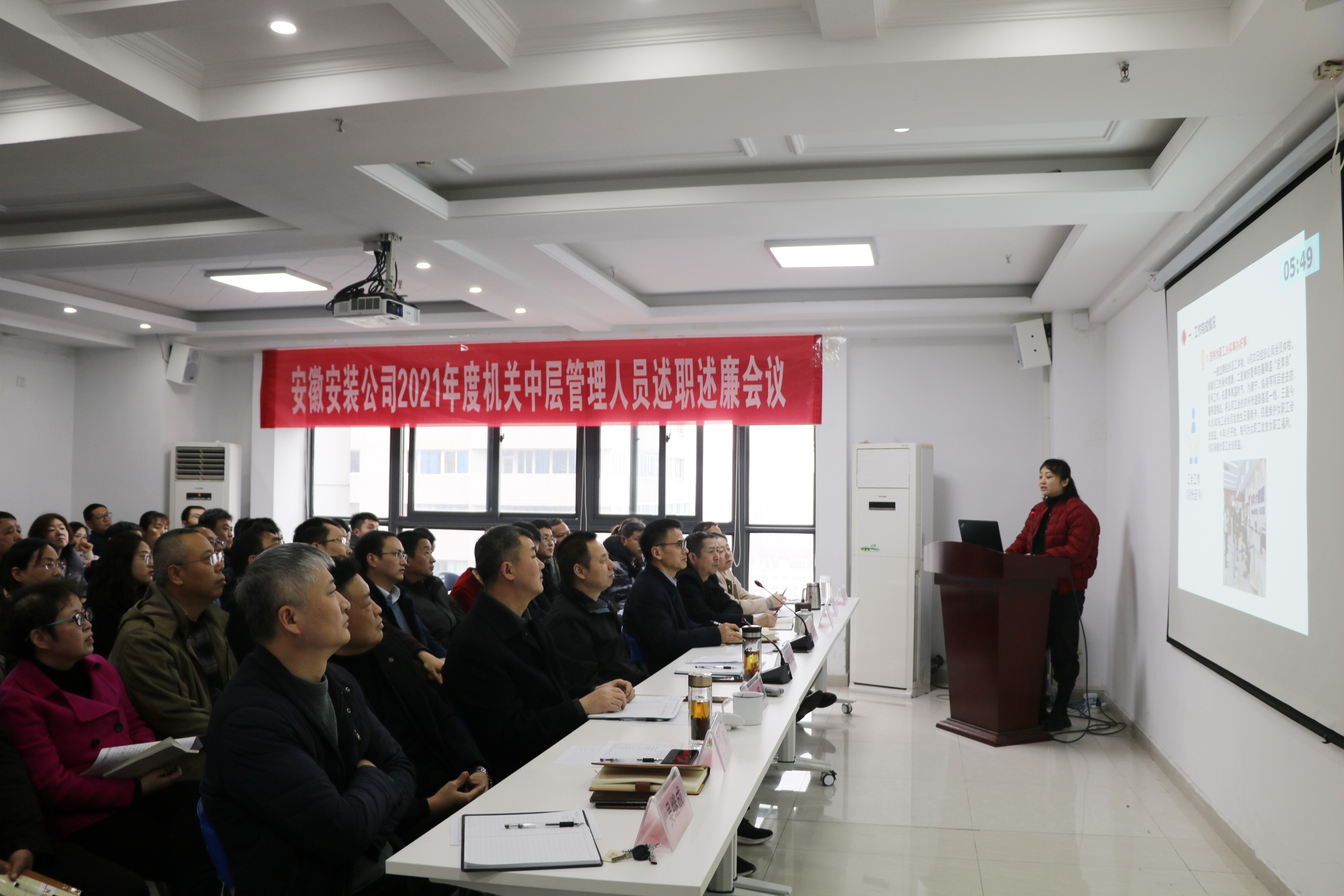 1月10日下午,安徽安裝公司召開2021年度機關中層管理人員述職述廉會議。公司領導班子成員、機關中層管理人員、分公司黨政負責人、機關部門員工代表共70余人參加會議,公司黨委書記、董事長胡六中主持會議。