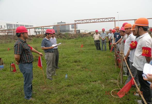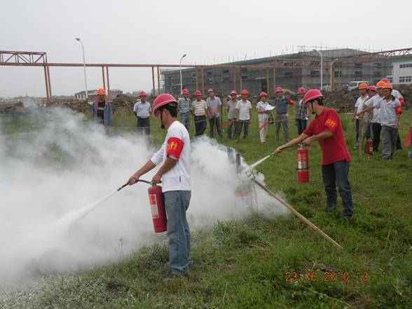為全面開展好“全國(guó)安全生產(chǎn)月”應(yīng)急預(yù)案演練周活動(dòng),切實(shí)提高企業(yè)應(yīng)對(duì)突發(fā)火災(zāi)事故處理能力和水平,2010年6月23日,公司保衛(wèi)處和生產(chǎn)處牽頭在肥東豐樂農(nóng)化中間體項(xiàng)目現(xiàn)場(chǎng)進(jìn)行了一次火災(zāi)事故應(yīng)急演練,副總經(jīng)理劉安俊擔(dān)任總指揮,各項(xiàng)目部均派人參加。