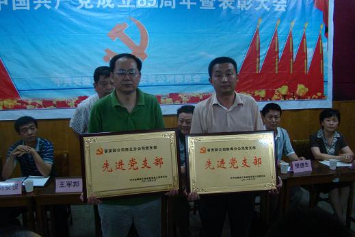 為紀(jì)念中國(guó)共產(chǎn)黨成立89周年,公司黨委于6月29日下午召開(kāi)了“紀(jì)念中國(guó)共產(chǎn)黨成立89周年暨‘創(chuàng)先爭(zhēng)優(yōu)’表彰大會(huì)”。公司在崗黨員、非黨員中層干部、入黨積極分子以及受表彰的先進(jìn)集體、先進(jìn)個(gè)人參加了大會(huì)。大會(huì)由總經(jīng)理王軍邦同志主持。
