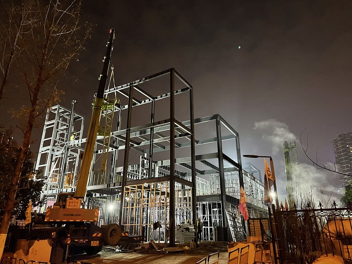 為搶抓工期,項(xiàng)目部迅速調(diào)集人力,自開工以來,項(xiàng)目一線施工人員一直保持在150人左右,采取24小時(shí)輪班制度,兩班倒的方式,“人歇工地不?!?,在嚴(yán)格實(shí)施安全防疫的同時(shí)加班加點(diǎn)搶時(shí)間,趕任務(wù),確保項(xiàng)目現(xiàn)場施工不斷推進(jìn),即使是在不利于施工作業(yè)的雨天,大家也合理安排施工計(jì)劃,主動(dòng)放棄休息,在已經(jīng)封頂?shù)囊粚?、二層結(jié)構(gòu)中進(jìn)行水、電、通風(fēng)、內(nèi)部裝飾等工作,全力以赴加快項(xiàng)目建設(shè)進(jìn)度。
